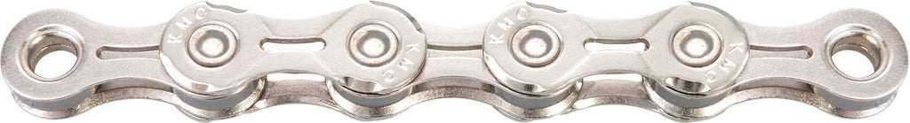 KMC ketting X11EL zilver 118 schakels (extra licht). Dankzij de innovatieve formule van KMC GO CHAIN WAX bieden de premium KMC kettingen die met onze wax zijn behandeld, naast een hoge efficiëntie ook een onbeperkte duurzaamheid. Vergeleken met smeermiddelen op oliebasis zijn gewaxte kettingen minder betrokken voor vuilopbouw, waardoor de werking van de aandrijflijn wordt verwijderd en de reinigingsintervallen worden gecorrigeerd.