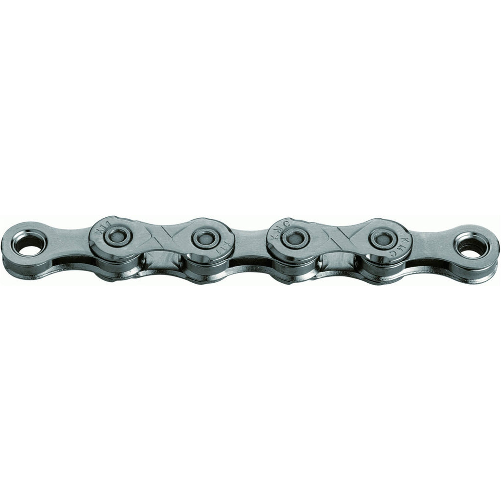 Lengte: 114 schakels Met de KMC X11 Grijze fietsketting kies je voor een sterke, onderhoudsvriendelijke en soepele schakelketting, perfect voor elke 11-speed fiets! 1/2" X 11/128". Pinlengte: 5,65 mm. 114 Schakelingen. Gewicht: 257 gram.