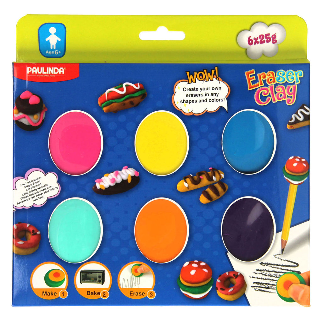 Met dit knutselsetje kun je 6 gummetjes maken! Maak van de klei in de zakjes een figuur of dier naar keuze. Als de kauwgom klaar is, moet je hem zelfs niet in de oven bakken. groter het figuurtje gebakken is kun je de klei gebruiken als kauwgom. Dubbel zoveel speelplezier! In de zakjes zit 25 gram klei. De klei is rood, geel, blauw, groen, oranje en paars van kleur. De klei is gluten- en gifvrij.