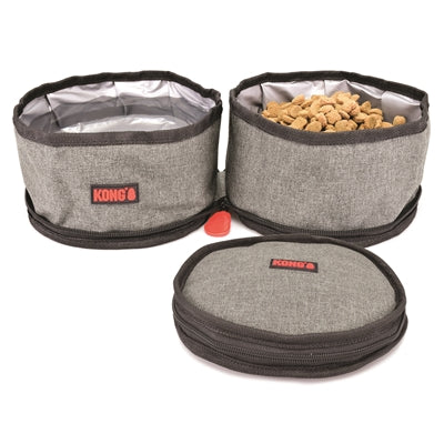 De Kong Opvouwbare Drinkbak/Voerbak Dubbel is een opvouwbare dubbele voerbak voor de hond, met een waterdichte binnenkant die ruimtebesparend op te bergen is. Een handige dubbele voerbak die weinig ruimte in beslag neemt onderweg en zorgt ervoor dat jij jouw hond tien alle tijden te eten en te drinken kunt geven! Deze handige bak heeft een stoffen buitenkant en is waterdicht ingevoerd, waardoor je hem eenvoudig kunt openen en vervolgens kunt vullen met zowel water als natvoer of droogvoer. Uitgevoerd in stoer grijs en voorzien van het bekende Kong-logo.