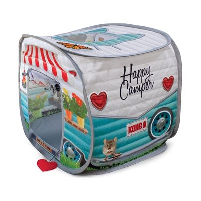De 39,4 x 51 x 39 cm is een speelhuis voor de kat in de vorm van een camper, met speeltje met kattenkruid. Jouw kat kan zich heerlijk verstoppen in dit leuke speelhuisje van KONG, in de vorm van een 'Happy Camper'! Katten verstoppen zich graag en deze leuke tent geeft daar de perfecte gelegenheid toe. Het stoffen, uitklapbare huisje heeft de vorm van een camper en is voorzien van een transparante deur, raam en zonnedak om lekker verstoppertje te kunnen spelen. De camper is voorzien van een speeltje dat gevuld is met kattenkruid voor nog meer speelplezier.