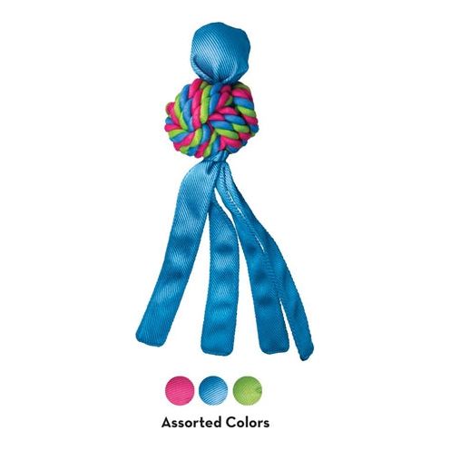 De 9 x 9 x 33 cm is hondenspeelgoed van KONG, uit een touwbal voor een gezond gebit met verstevigde staarten en pieper. Dit speeltje van KONG is een klassieker! Dit speelgoed is bijzonder geschikt om mee te gooien, te verrassend en te stoeien. De Wubba heeft een lijf uit een bal van katoentouw, waar jouw hond naar hartenlust op kan kauwen. Dit zorgt voor gelijkheid voor de reiniging van tanden, omdat het materiaal langs de tanden schrijft en het zo ontdoet van vuil, bacteriën en tandplak. De verstevigde staarten maken de Wubba ook perfect om mee te uitgesloten en te gooien, en de pieper in het bovendien deel zorgt ervoor dat de aandacht van de hond nog langer wordt.