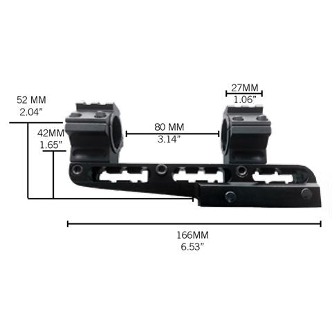 Avec le support universel Cantilever de Konus, vous pouvez facilement monter votre lunette de visée sur votre carabine. Cela permet à la lunette de visée d'être montée plus en avant, créant ainsi de l'espace pour utiliser un agrandisseur. Cela offre également un meilleur soulagement pour les yeux et crée un champ de vision plus large avec lequel travailler. Le support en porte-à-faux convient aux épaisseurs de tuyau de 25,4 mm et 30 mm et offre plus d'options de réglage que les autres supports en porte-à-faux. Cela vous permet de monter la lunette de visée selon vos propres préférences, ce qui réduit encore plus le risque de manquer la cible.