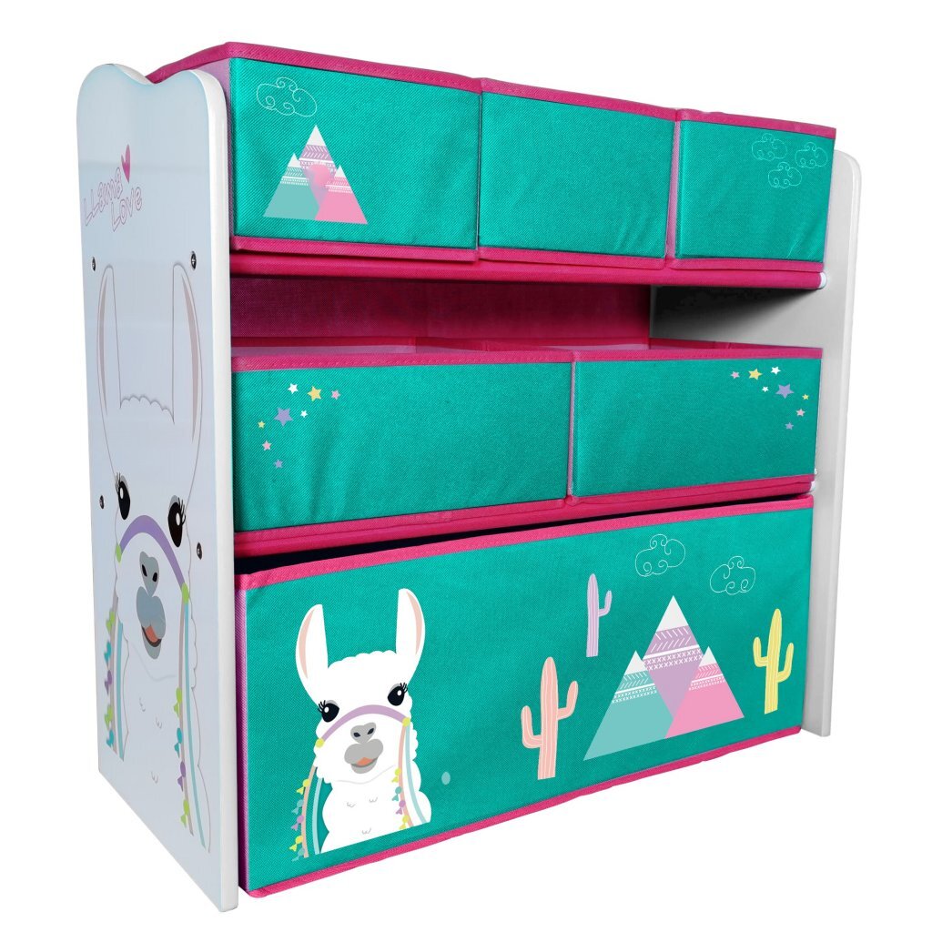 Deze metmooie kleuren passen perfect in elke kamer. Dit multifunctionele meubelstuk leert het kindal jong op een speelse manierhet speelgoed op te ruimen.