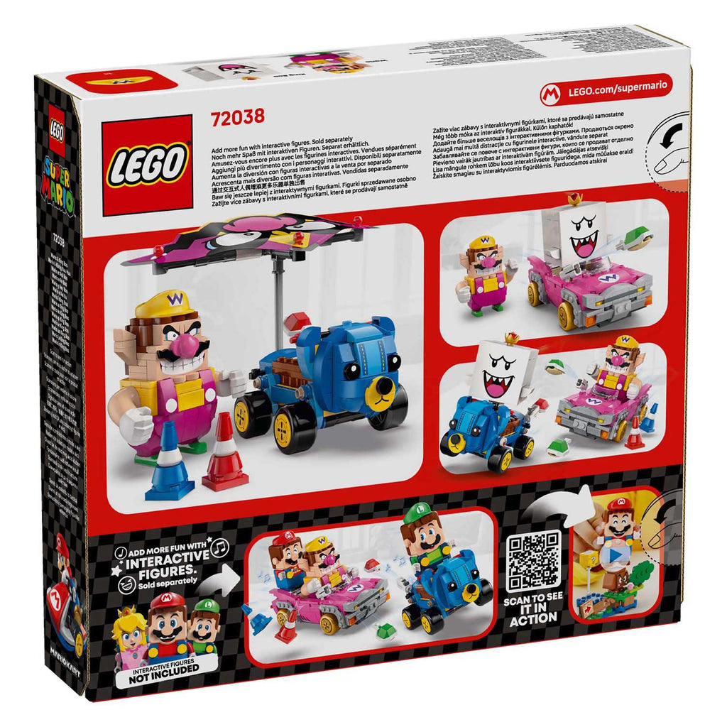 Race, drift en zweef met deze LEGO® Super Mario™: Mario Kart™ – Wario en King Boo speelset voor kinderen (72038). De set is een leuk cadeau met Nintendo® personages voor gamers vanaf 8 jaar en bevat 2 LEGO Super Mario figuren en modellen van de bekende Blingbolide en Knuffelquad voertuigen, plus 2 pylonnen. Elke kart heeft een lanceringsfunctie voor schilden en kan driften. De Blingbolide heeft een afneembare vlieger die ook op de Knuffelquad past. Plaats een LEGO® Mario™, LEGO® Luigi™ of LEGO® Peach™ figuur (uit set 71439, 71440, 71441 of 72043 – apart verkrijgbaar) in een van de karts voor interactief speelplezier en activeer Mario Kart geluiden en visuele effecten voor toeteren, driften en zweven. Je vindt de bouwinstructies voor deze Nintendo LEGO set in de doos en in de LEGO Super Mario app. Kijk ook eens naar de andere LEGO Super Mario: Mario Kart sets (apart verkrijgbaar) voor meer personages en voertuigen om het tegen op te nemen. Deze set bevat 512 onderdelen.