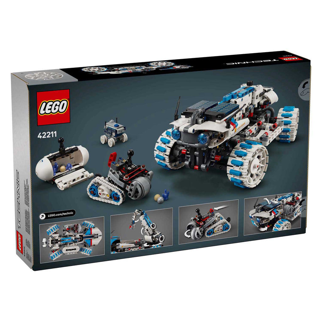 Laat de fantasie van jongens en meisjes vanaf 10 jaar tot grote hoogten stijgen! Dit LEGO® Technic Lunar Outpost™ maanrover ruimtevoertuig (42211) is geïnspireerd op echte Lunar Outpost voertuigen waarmee de mens opnieuw voet op de maan kan zetten. De set bevat een maanrover, een mijnrover en een MAPP-rover voor eindeloze ontdekkingsreizen. Deze set heeft veel functies om creatieve verhalen te stimuleren. Het hoofdmodel is een futuristische maanrover met flexibele ophanging, 4-wielbesturing, uitklapbare zonnepanelen en een draaibare arm. Gebruik de arm om de kleinere mijnbouwrover eraf te tillen en stuur hem op een missie om regoliet (maanstenen) te vinden. Bewaar de stenen in de monstercontainer en gebruik de MAPP-rover om meer informatie over het oppervlak van de maan te verzamelen. Deze set is een leuk cadeau voor jongens en meisjes die van wetenschap en robotspeelgoed houden en voor iedereen met een passie voor ruimtevaart en maanverkenning. De set bevat 1082 onderdelen.