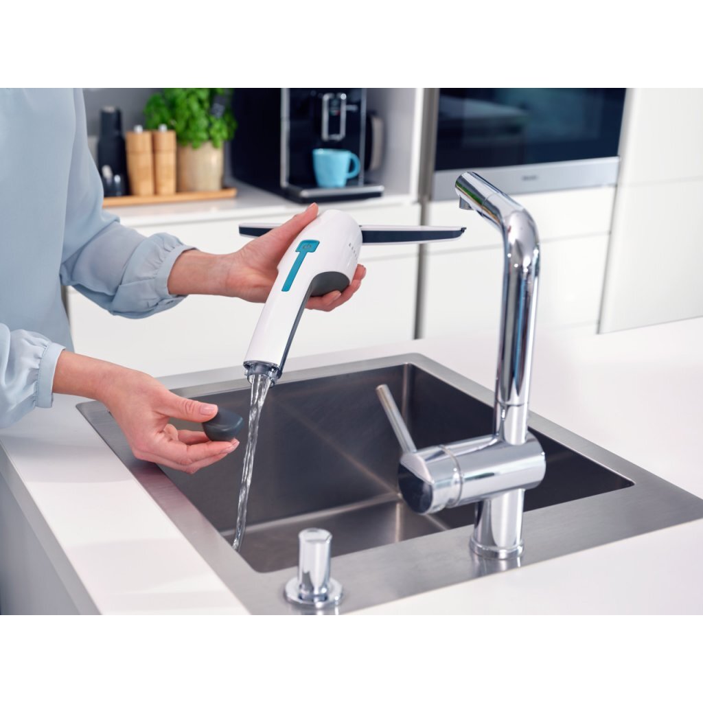 Raam- en badkamerzuiger Nemo is perfect als je graag snel en gemakkelijk schone ramen, spiegels en tegels wilt. Met de automatische zuigfunctie zuigt hij gladde oppervlakken supersnel stralend schoon zonder strepen, zonder druppel. De kleine vorm werkt heel prettig en gemakkelijk. Het reservoir is plaatsbesparend in de handgreep, waardoor je het raam in één keer van boven naar beneden kunt zuigen, zonder dat de vensterbank in de weg zit. De raamzuiger komt helemaal klaar, dus je hoeft geen water meer op te vegen. Ook in de badkamer ontpopt zich deze handige raam- en badkamerzuiger als een echt multitalent: spiegels, tegels en de douchecabine maak je moeiteloos streeploos schoon. Een speciale badkamer-zuigmond met wit wisserblad is vaak verkrijgbaar dit wisserblad zich ook soepel bij tegels met oneffenheden. Deze unieke Nemo-zuiger met waterbeschermingsklasse IPX7 kun je gerust in de douche laten liggen dan heb je hem altijd bij de hand. De tank kan via de opening in de handgreep snel en simpel leeggemaakt worden. Dankzij de krachtige accu kun je 40 minuten lang zuigen met één keer opladen, dat is maar liefst 130 m². Natuurlijk is het wisserblad vervangbaar. Dus altijd een optimaal dichtersresultaat!