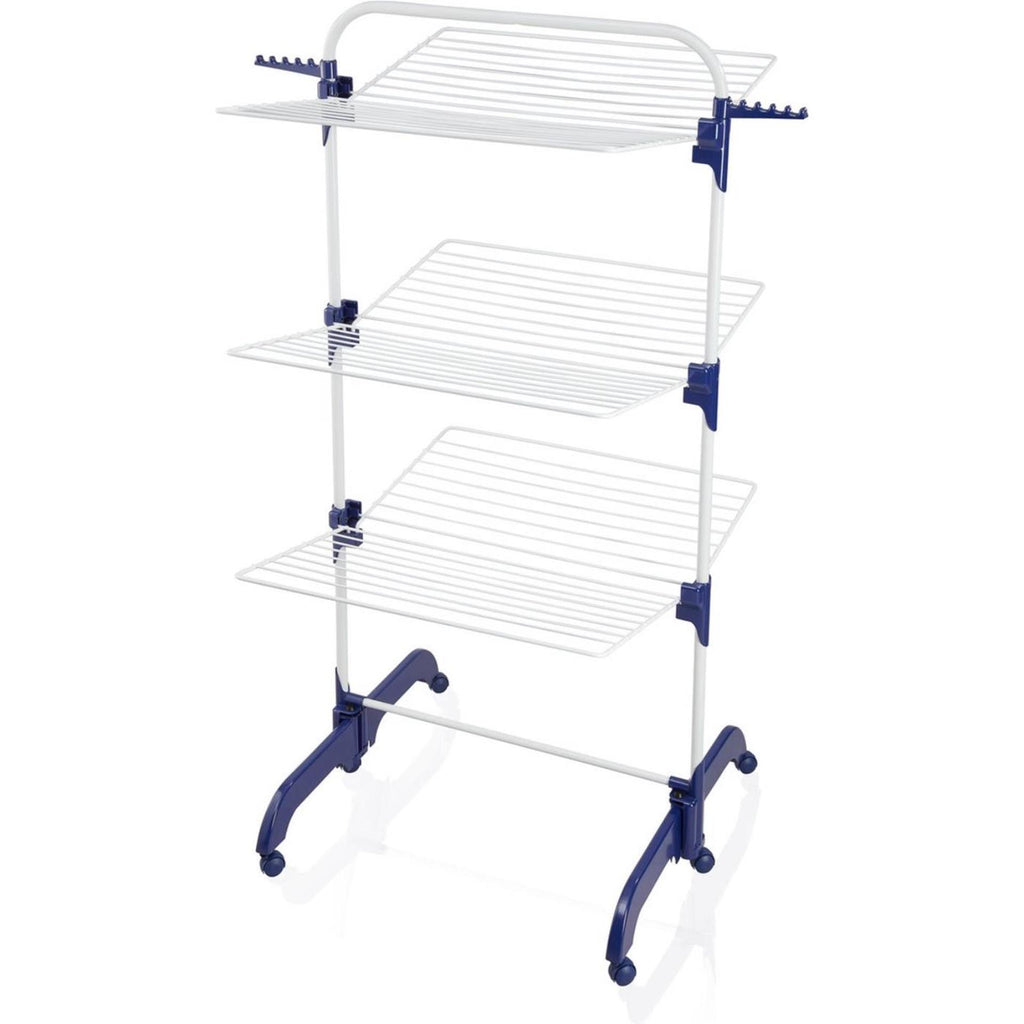 Het ruimtewonder van Leifheit in modern en aantrekkelijk zwart! Met zijn afmetingen van max. 76,5 x 70 cm voorbij de droogtoren in een kleine badkamer, op een klein balkon of in een kleine gang. Drie boven elkaar liggende droogniveaus bieden een drooglengte van 42 meter en ruimte voor maximaal 4 wasmachineladingen. Omdat de droogroosters soms ingeklapt kunnen worden, kan de torendroger halfzijdig gebruikt worden en gemakkelijk tegen een muur geplaatst worden. Dankzij de 6 geïntegreerde, soepele wielen kan hij bij volle belading in alle richtingen worden verplaatst. De wielen hebben een 360° draaikoppeling die rondom gedraaid kan worden. Dedroogtoren is ideaal voor gezinnen met beperkte droogruimte. Na gebruik kan je de 420 makkelijk inklappen: plat opgevouwen verleden hij gemakkelijk tussen de kast en de muur. Dankzij de 2 zijdelingse kledinghangerhouders biedt de droogtoren extra droogruimte. De hoogte is 1,45 meter.