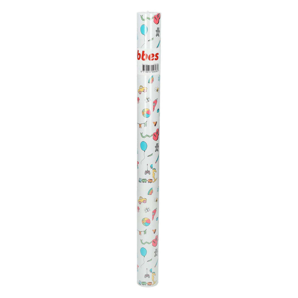 Lobbes inpakpapier met speelgoedprint. Afmeting 300 x 50 centimeter.