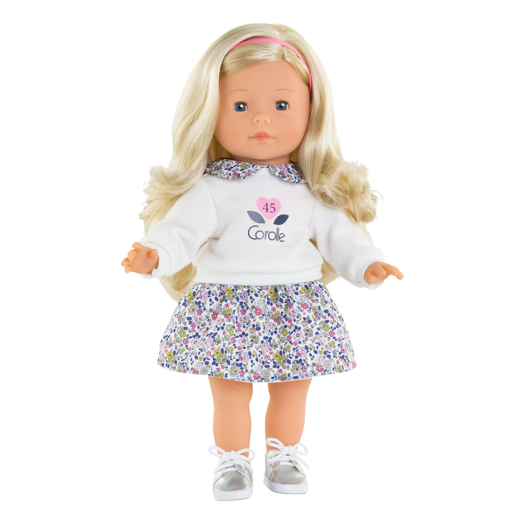 Jubileumeditie van Corolle pop. Clemence met blauwe ogen en lang blond haar en een tijdloze outfit. Ruikt subtiel naar vanille. Pop is 36 cm groot. Geschikt vanaf 4 jaar oud.