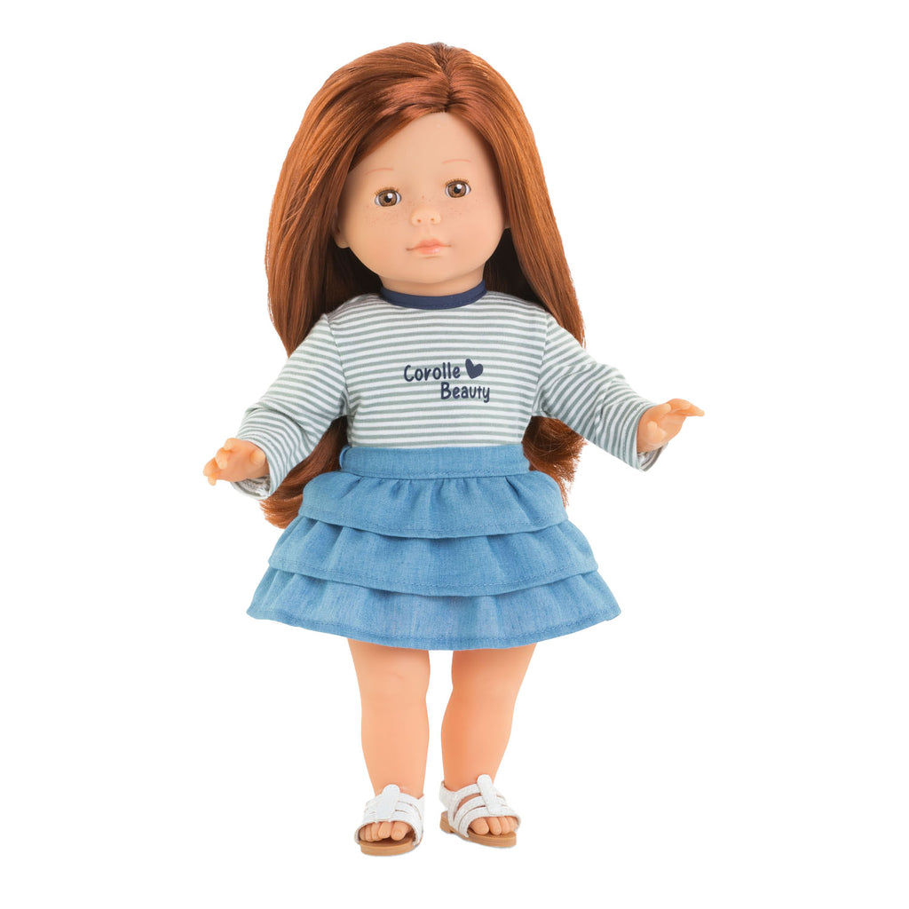 Blauw lagen rokje geschikt voor Corolle-poppen van 36 cm en voor kinderen vanaf 4 jaar.