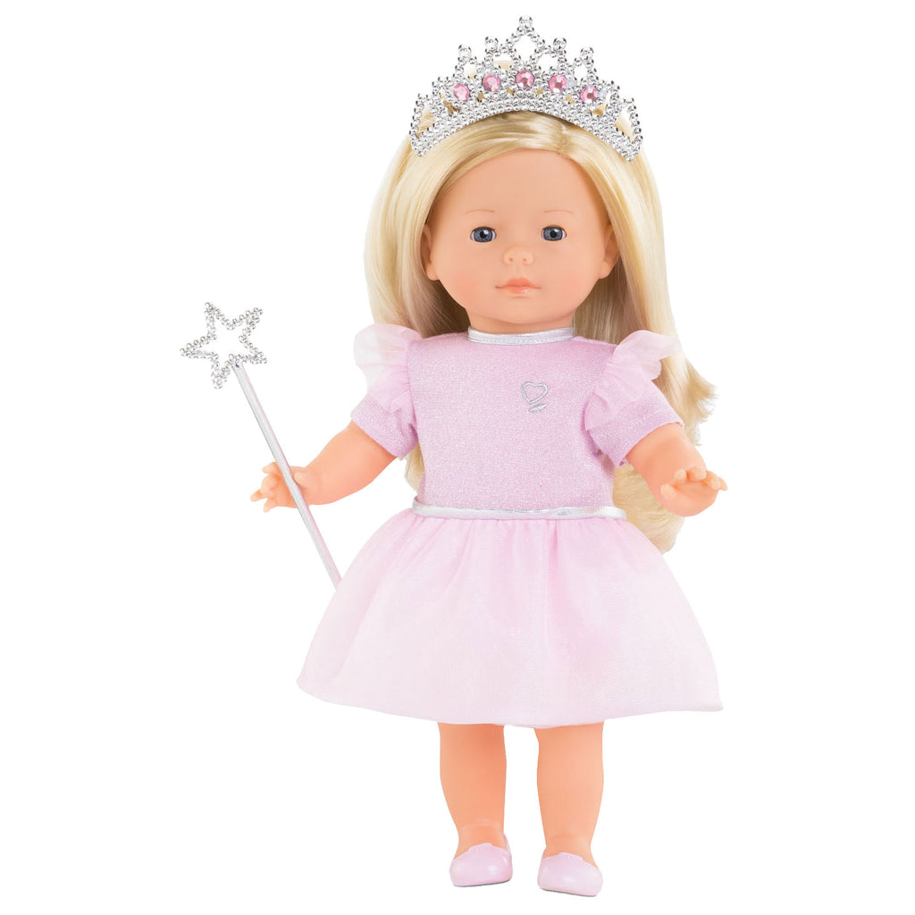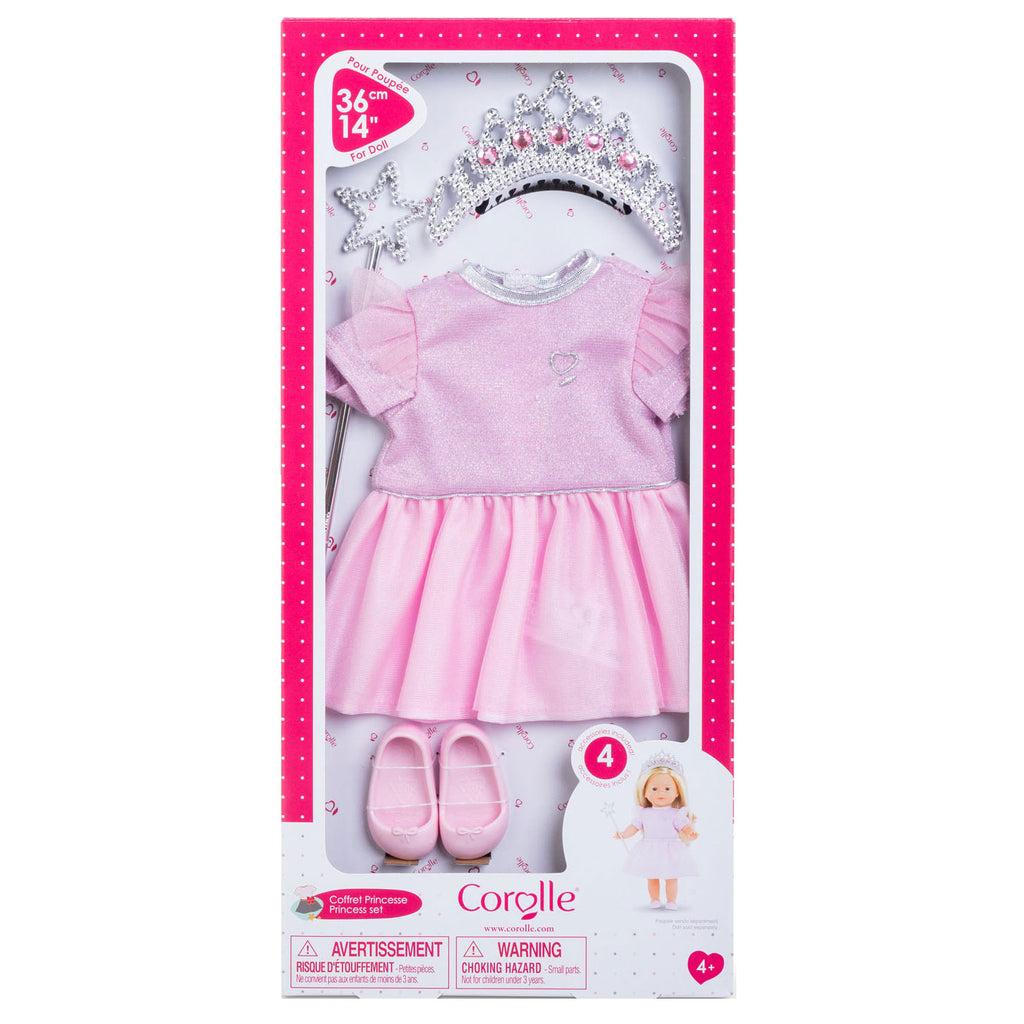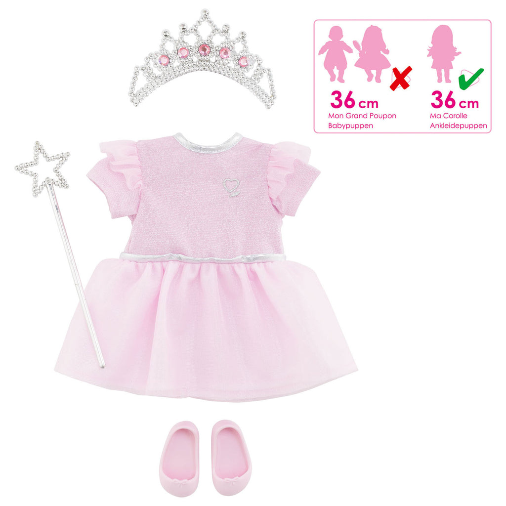 Prinsessenoutfit om je pop prinses te laten spelen. Inhoud van de set: 1 prinsessenjurk, 1 tiara, 1 toverstaf en 1 paar ballerina's. Outfit geschikt voor poppen van 36 cm groot. Geschikt speelgoed voor kinderen vanaf 4 jaar oud.