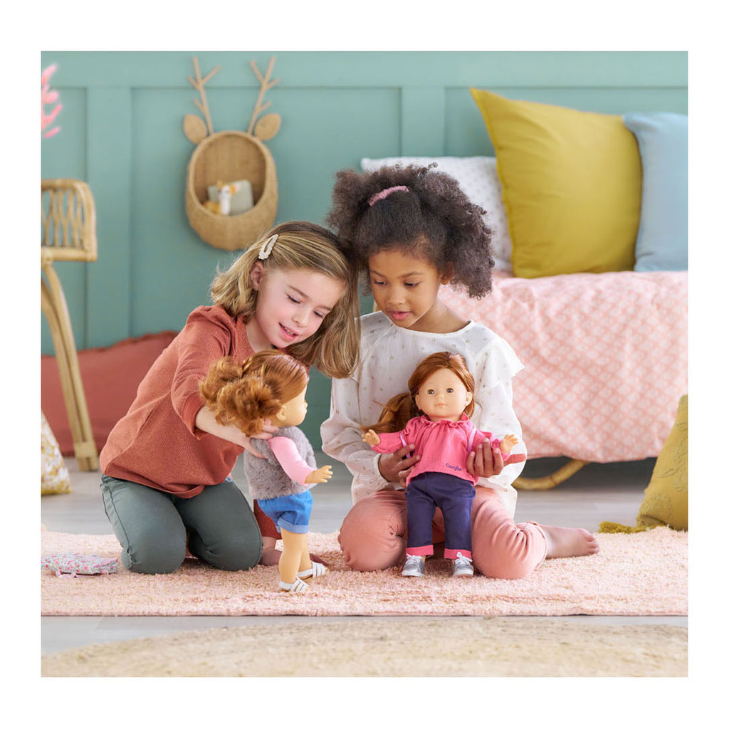 Kledingset voor een 36cm Corolle pop. De set bestaat uit een roze trui en zwarte broek. De outfit is geschikt voor kinderen vanaf 4 jaar.