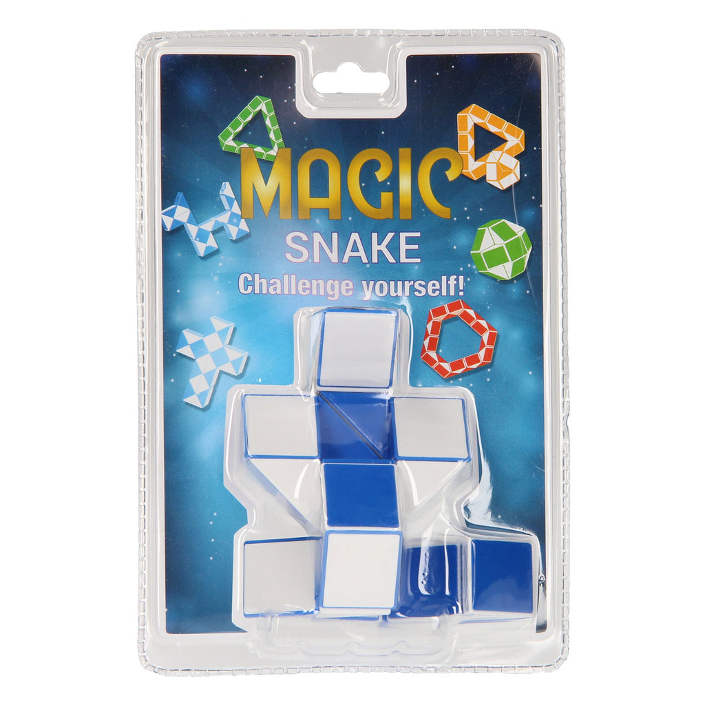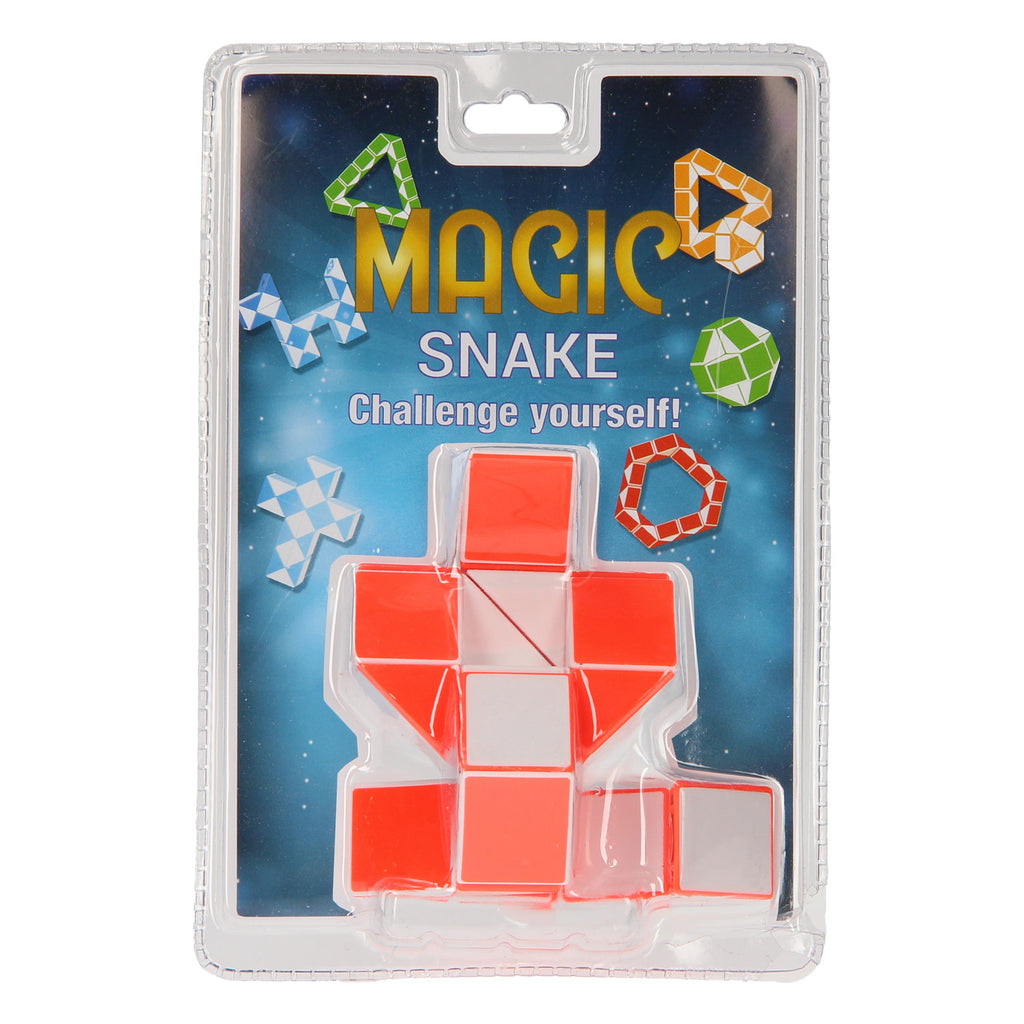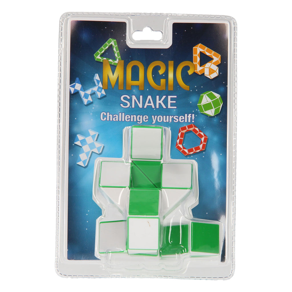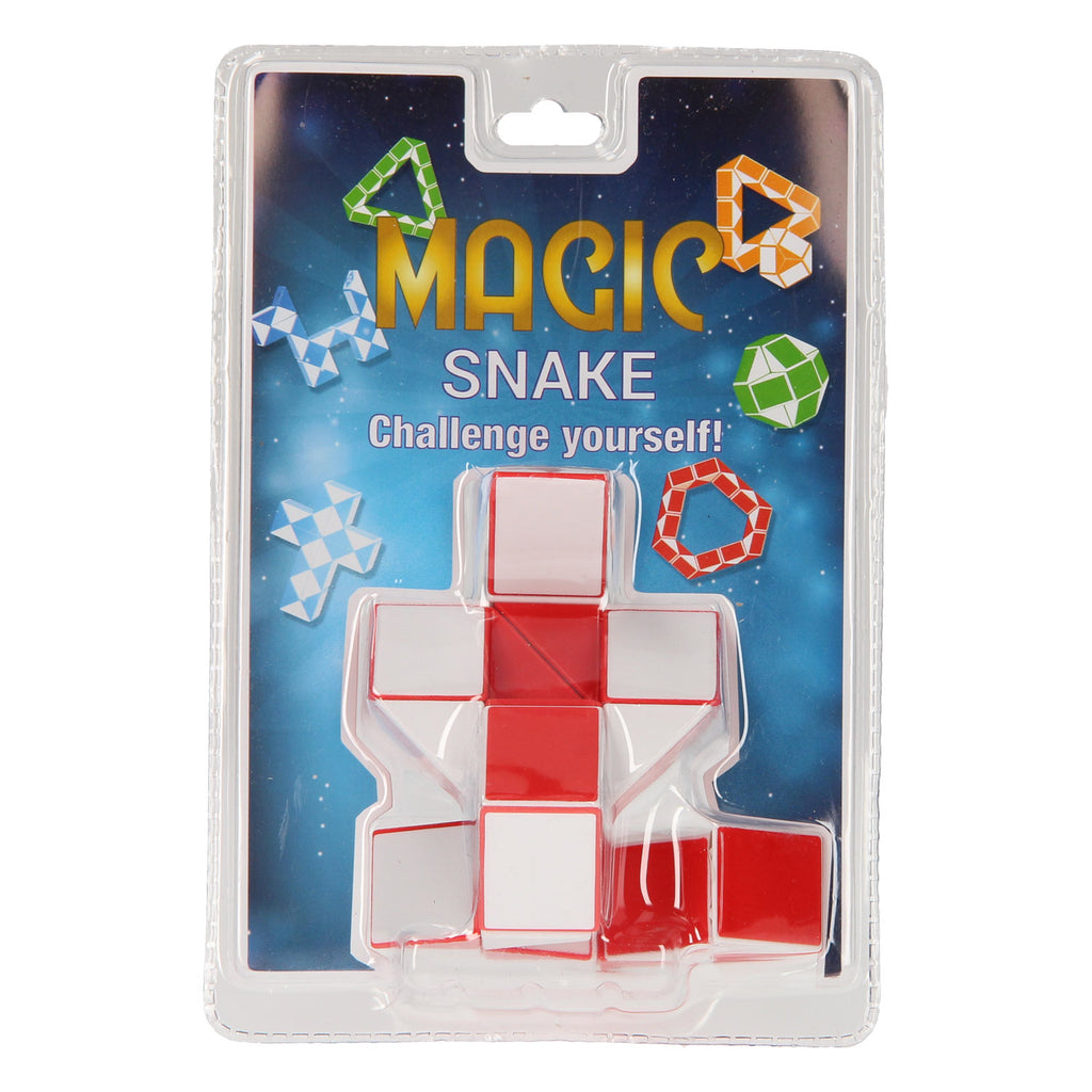 Met deze Magische Slang kun je allerlei figuren maken. Het jargon bestaat uit blokjes in de vorm van een liggende driehoek. Probeer bijvoorbeeld een hondje, een driehoek of een kruis in elkaar te zetten.