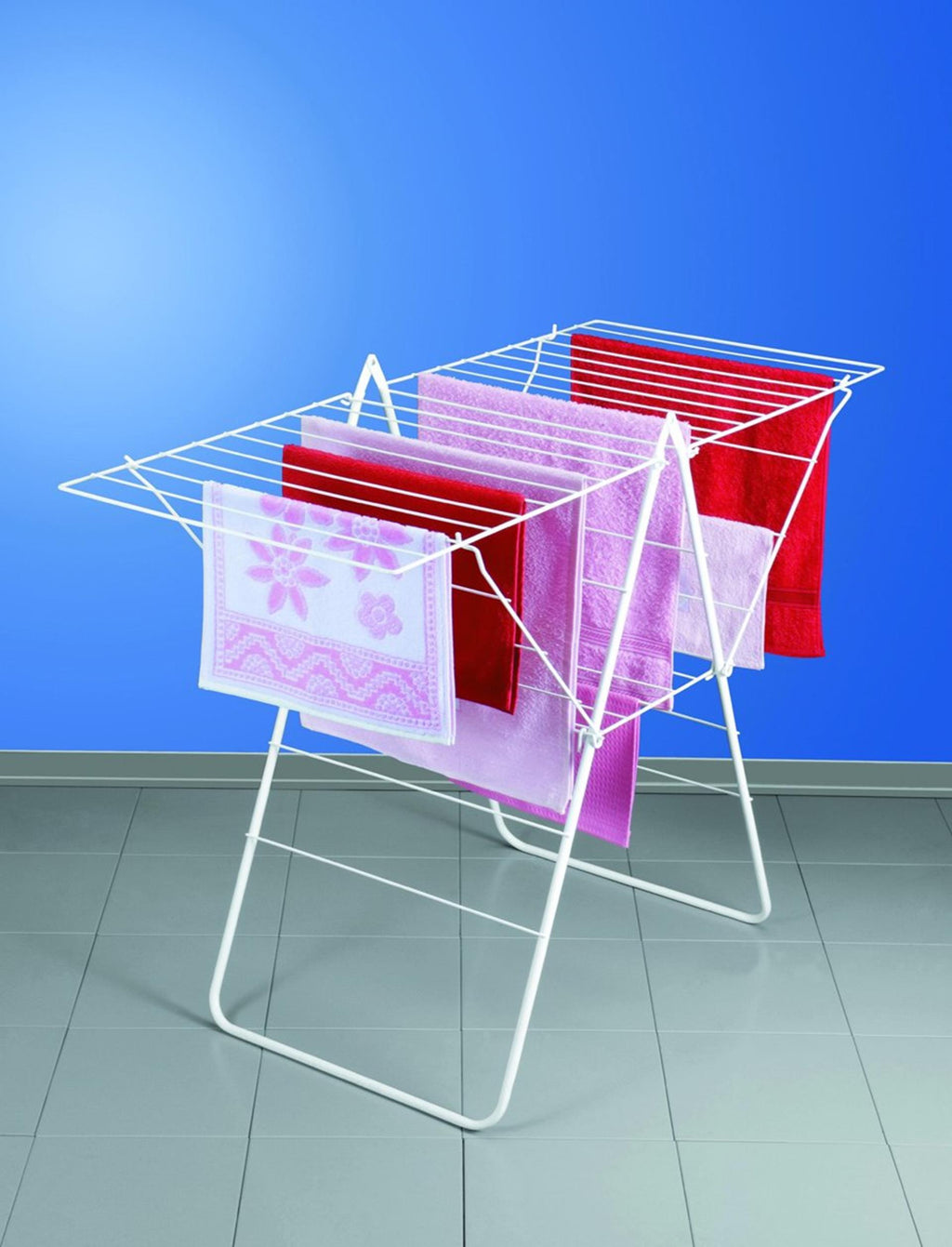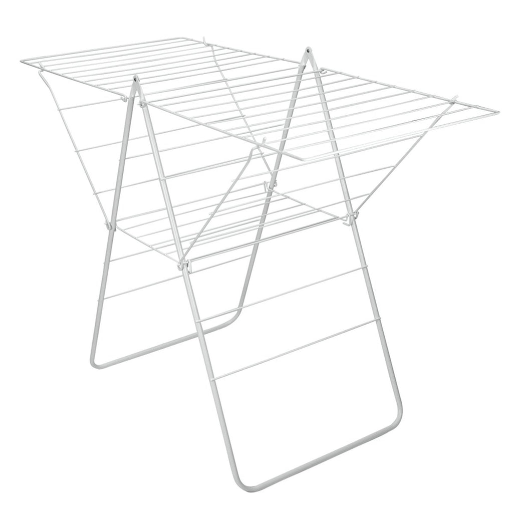 Het inklapbare droogrek is ideaal voor het drogen van kleding, handdoeken en beddengoed omdat je de vleugels in hoogte kunt verstellen. Het droogrek is gemaakt van staal met LDPE (lagedichtheidpolyetheen) coating, een sterke en toch zachte, wereldwijde standaardcoating voor ijzer-/staaldraadproducten. De coating beschermt het droogrek ook tegen roest.