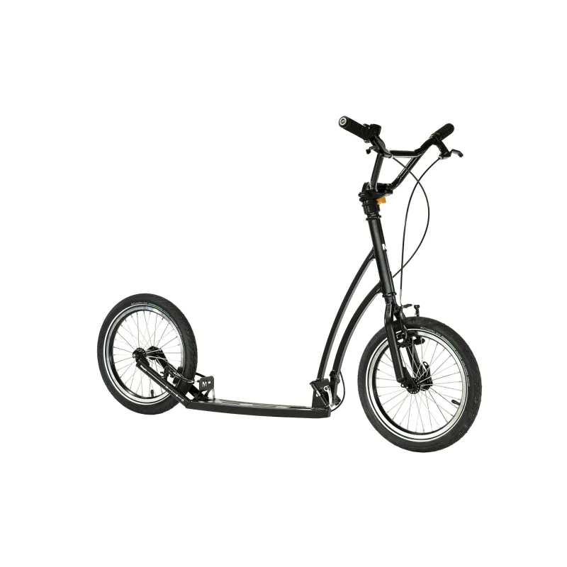 Très beau scooter pliant pour adultes, y compris le support. Scooter unique, roule incroyablement en douceur et offre donc un confort de conduite exceptionnel. Le scooter est fabriqué en petites quantités et entièrement à la main en République tchèque. Caractéristiques techniques Cadre : cadre en acier pliable (garantie 5 ans !) Guidon : Acier Hauteur du guidon : max 95 cm Poignées : mousse Aheadset Freins : frein avant et arrière V, Shimano 4000 Roues : roue avant Classic 16" et roue arrière 16" Alu 32, moyeux à dégagement rapide Novatec professionnels Pneus : Pneus Schwalbe Road Cruiser 16 x 1,75 Longueur du marchepied : 40 cm Largeur du marchepied avant 7,3 cm arrière 9,5 cm Hauteur de dégagement du marchepied : 4 cm Poids : 10 kg Longueur totale : 140 cm Dimensions trottinette pliée : 110x53x17cm Charge maximale : 150 kg Garde-boue : non en option voir Accessoires art.no. MB001 Standard : oui, Bell intégrée : oui