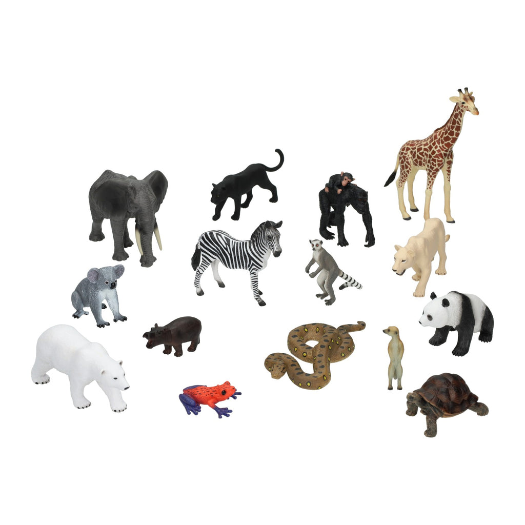 Ga op wereldreis door de dierenwereld met dit uitgebreide schoolpakket van Mojo! Deze set bevat 15 gedetailleerde dierenfiguren, perfect voor educatieve doeleinden, creatieve spelmomenten of thematische lessen over de natuur. Elk dier is natuurgetrouw vormgegeven en gemaakt van hoogwaardig kunststof, ideaal voor gebruik in de klas of thuis. Inhoud van het pakket: olifant, giraffe, zebra, panda, ijsbeer, koala, panter, chimpansee met jong, witte leeuw, ringstaartmaki, meerkat, slang, schildpad, rode gifkikker en nijlpaard.