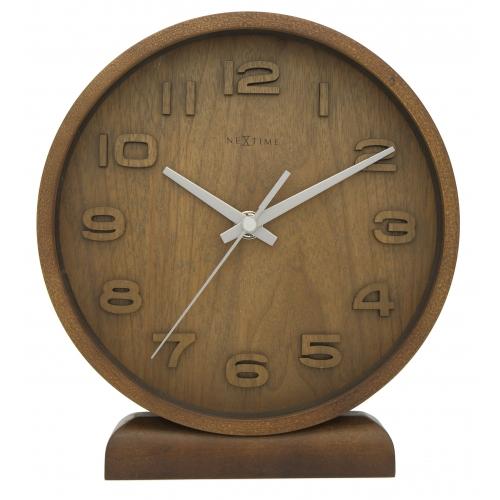De NeXtime Wood Wood Small tafelklok is zorgvuldig ontworpen van duurzaam geoogst hout. Dit klokdesign straalt een variabele elegantie uit en heeft een 3D-uuraanduiding met cijfers. Het gehele klokdesign, inclusief de wijzers, is van hout gemaakt. Deze tafelklok heeft een glasplaat voor de grijze wijzerplaat en een stil uurwerk. Elke klok is uniek omdat elke klok uit een ander stuk hout is vervaardigd. Niemand heeft dus dezelfde klok als u in huis hangt. Afm. 22x20,5x4,5cm