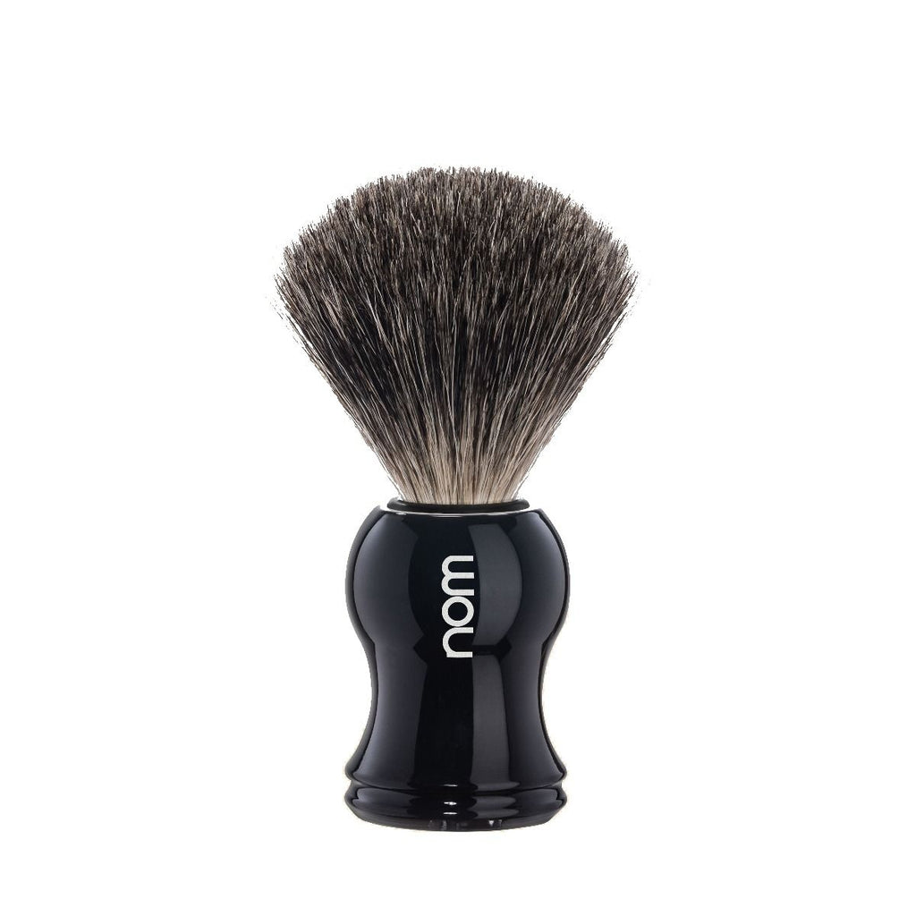 GUSTAV, de klassieker van de collectie in de kleur zwart met dassenhaarnet als het prototype van elk scheerkwastje, een eigentijdse interpretatie. Gemaakt van een licht glinsterend kunststof, de fijne taille van het handvat is een soort antislipgarantie voor duim en wijsvinger, ringmaat 21 mm. Puur is de basiskwaliteit van de natuurlijke haartypes. Het materiaal is te herkennen aan de relatief donkere kleur. De haren haren zijn wat nadrukkelijk, maar nog steeds zacht en flexibel. Deze kwaliteit wordt sterk aanbevolen voor krachtige die een dassenhaarborstel willen nemen die een iets sterker massage-effect biedt. Plus- en minpunten Puur dassenhaar Sterk massage-effect Antislipgarantie voor duim- en wijsvinger