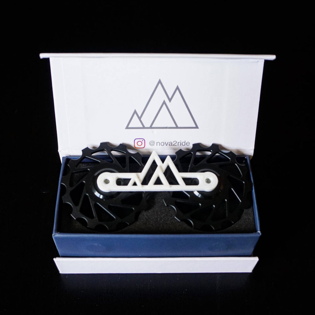 Dit product is bedoeld voor het MTB-assortiment! Zeer eenvoudig te monteren, en passen bij veel varianten. Deze NOVA keramische wielen voor de achterderailleur zijn ontworpen door onze Franse ingenieurs, verbeteren de soepelheid van uw transmissie en verbeteren de efficiëntie om de meest veeleisende fietser tevreden te stellen. Gemaakt van zeer hoogwaardige materialen: 7075 aluminium en volledig keramische afgedichte lagers. De 14T derailleur wieltjes funktioneren alléén op mechanische groepen.