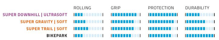 LA GRANDE BETTY LA GRANDE BETTY EST DE RETOUR ! Équipé de tout ce que la technologie moderne a à offrir. Un polyvalent Downhill et Enduro pour les conditions sèches à humides. Big Betty fonctionne parfaitement sur la roue arrière en combinaison avec notre bien-aimée Magic Mary. Bords de freinage longs et inclinés pour une traction de freinage maximale