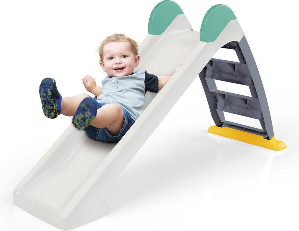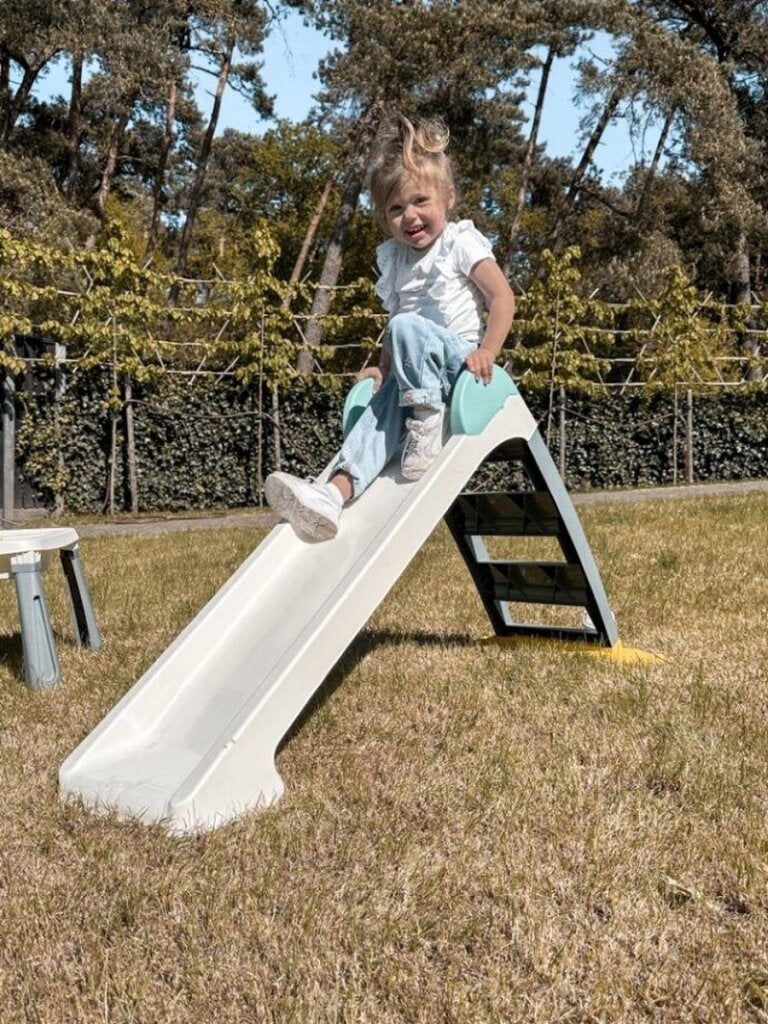 De glijbaan kun je zowel binnen als buiten gebruiken. Daarnaast is de glijbaan gemakkelijk in elkaar te zetten.