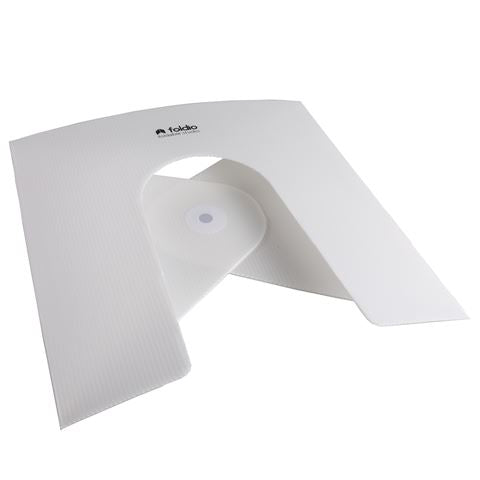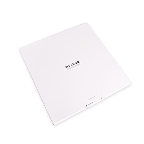 Vous pouvez utiliser le capot avant Orangemonkie pour le Foldio2 Plus pour votre Foldio2 Plus. Déplié, le Front Cover mesure 38x38 cm. Il est fait de plastique souple et solide.