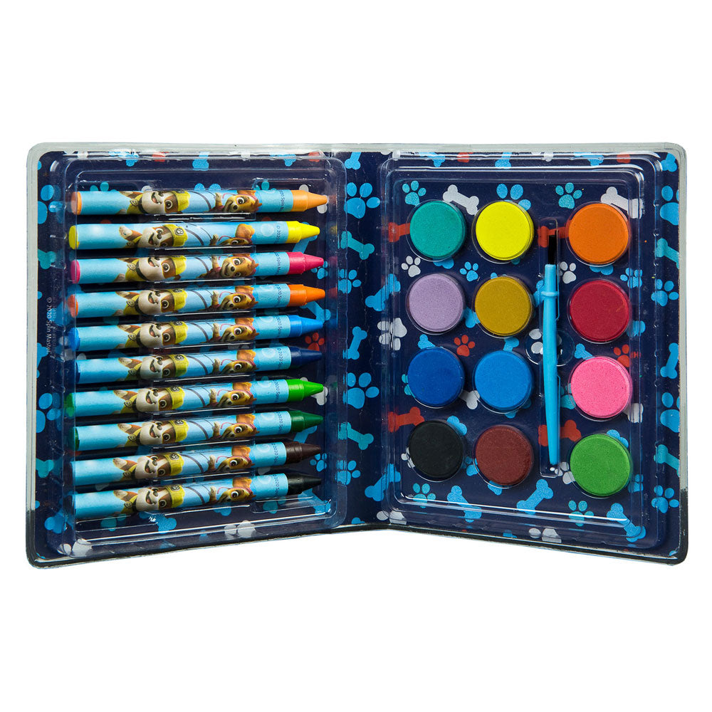 25-delige PAW Patrol kleurkoffer met 10 waskrijtjes, 12 kleuren waterverf en een penseeltje. Afmetingen: 13 x 14,4 x 2,1 cm. Geschikt vanaf 3 jaar.
