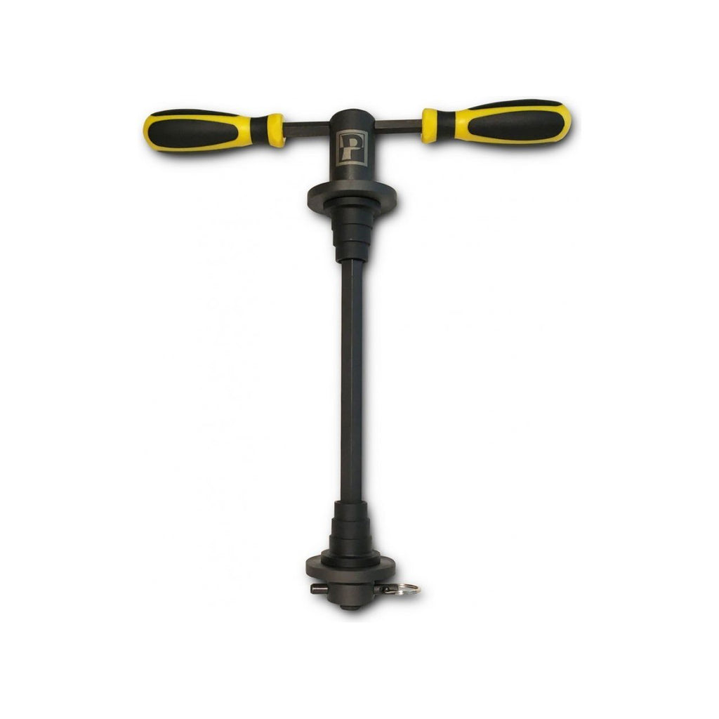 La presse pour casque et roulement est un outil de qualité professionnelle conçu pour une installation précise et précise des casques 1", 1 ?", 1¼" et 1,5", ainsi que de la plupart des boîtiers de pédalier à ajustement serré. Les caractéristiques comprennent des poignées ergonomiques amovibles de 13", un palier de butée de précision pour une pression douce et sans effort, un module de presse inférieur à dégagement rapide pour une insertion et un retrait rapides de l'outil, et une plage de travail étendue de 2,4" à 14,5" pour une polyvalence ultime.
