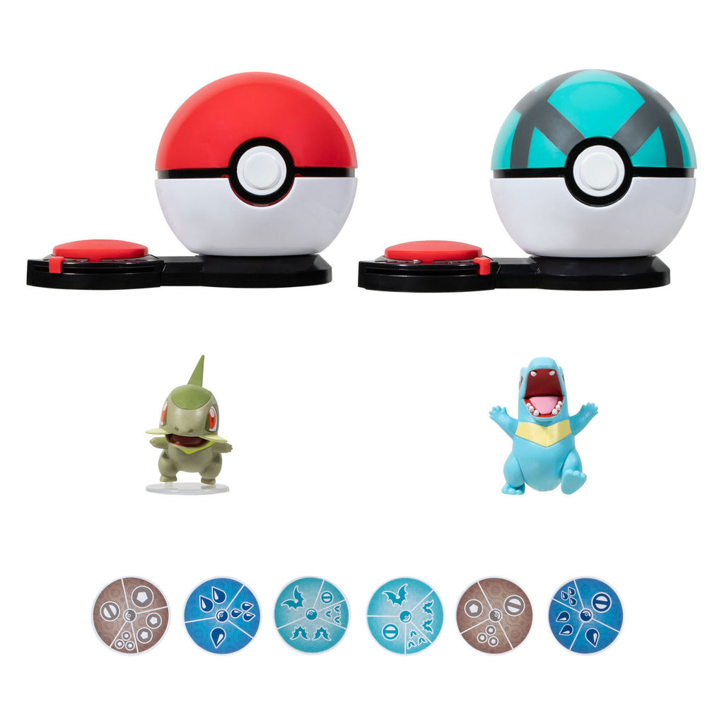 Met dit 1 tegen 1 actiespel ben je altijd klaar voor actie! Deze set bevat 2 Poké Balls, twee Pokémon actiefiguren van 5 cm en 6 verschillende aanvalsschijven. Plaats je Pokémon, kies je aanval en sluit de Poké Ball. Druk tegelijkertijd met je tegenstander op de knop om in de aanval te gaan! Woord de beste Pokémon-trainer met de Surprise Attack-game van Pokémon! product �?� 2x unieke Poké Balls �?� 2x 5cm Pokémon figuren �?� 6x Aanvalschijven