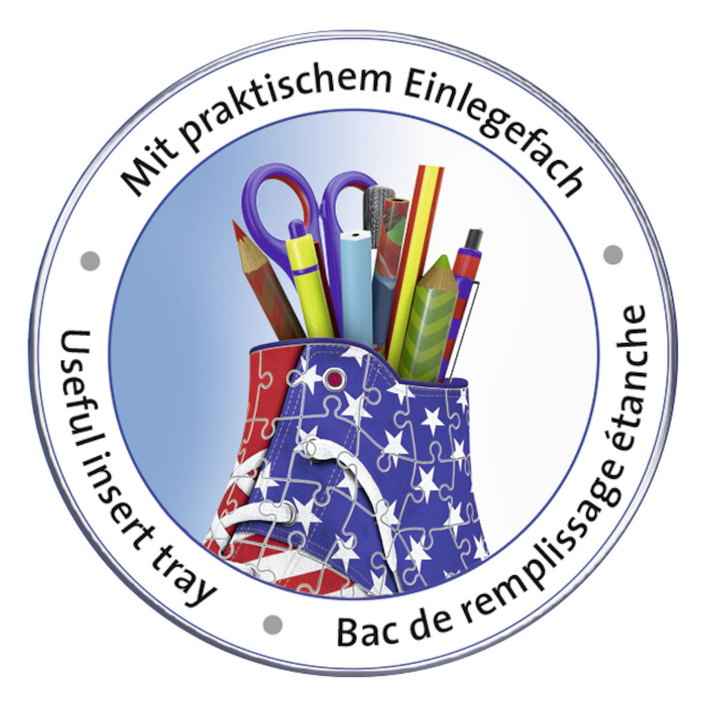 Deze 3D-puzzel van Ravensburger heeft de vorm van een sneaker. Met 108 stevige kunststof puzzelstukjes kun je een sneaker met een cool Amerikaans ontwerp creëren, wat perfect is als decoratie voor je kamer!