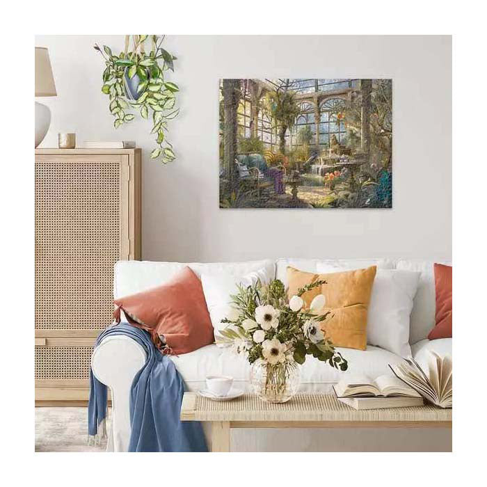 De Ravensburger De Kas puzzel van 1500 stukjes toont een prachtig, groen binnenparadijs vol planten en zonlicht. Een rustgevende en uitdagende puzzel voor natuurliefhebbers en sfeerpuzzelaars.