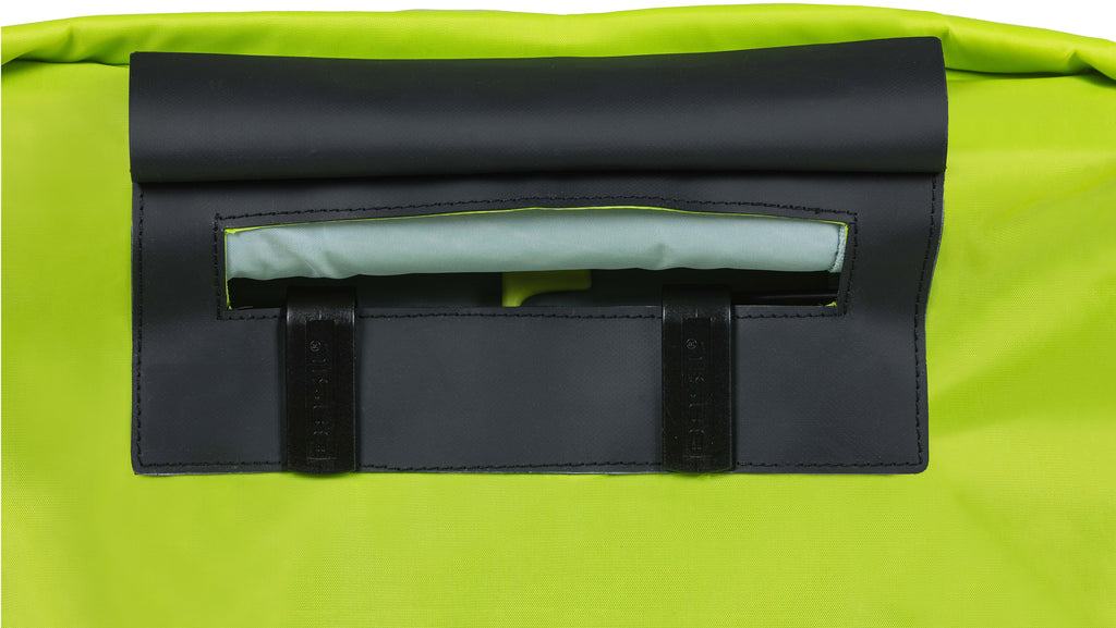 La housse de pluie horizontale Basil Keep Dry & Clean protège votre sac dans son ensemble contre la pluie et les éclaboussures de saleté. La housse de pluie pratique pour un sac d'ordinateur portable, par exemple, est disponible dans une couleur jaune fluo. La housse de pluie Basil Keep Dry & Clean est l'accessoire parfait pour votre sacoche ! La housse de pluie horizontale spécialement conçue protège l'ensemble du sac contre la pluie et la saleté. Ce modèle de housse de pluie est horizontal et peut donc être bien combiné avec, par exemple, des sacs pour ordinateur portable, des sacs messagers et des sacs à bandoulière pour vélo. Le système Hook-On a été pris en compte à l'arrière, afin que vous puissiez facilement attacher le sac à votre porte-bagages. Ces crochets sont protégés par un rabat pendant le cyclisme. De cette façon, la housse de pluie empêche la pluie ou la saleté de pénétrer dans votre sac. Même pas à l'arrière ! Et c'est aussi bien si vous voulez emporter le sac avec vous après votre balade à vélo. La housse est réglable avec une fermeture à enroulement qui se ferme avec une fermeture à clic sur les côtés. De cette façon, vous pouvez ajuster complètement la housse de pluie à votre sac. La housse de pluie horizontale est fabriquée dans une couleur jaune fluo saisissante, de sorte que vous vous démarquez lors d'une averse de pluie pendant la journée. Grâce à la réflexion sur trois côtés, vous vous démarquez mieux dans l'obscurité. La housse de pluie horizontale Basil Keep Dry & Clean est livrée avec un sac de rangement pratique. Caractéristiques: Housse de pluie horizontale adaptée, par exemple, aux sacs pour ordinateur portable, aux sacoches de messager ou aux sacs à bandoulière pour vélo.