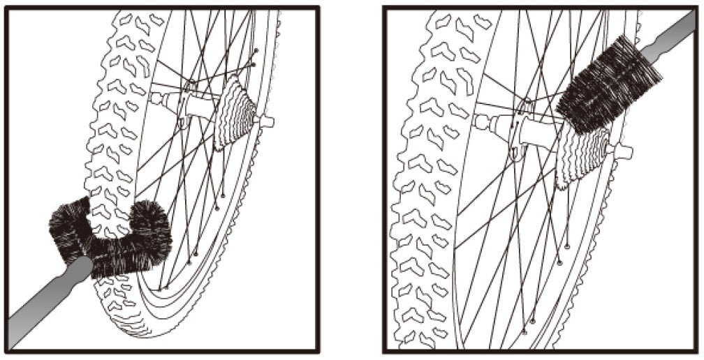 Reinigingsborstelset met stugge haren voor intensief onderhoud van MTB banden en tandwielen. Merk: IceToolz