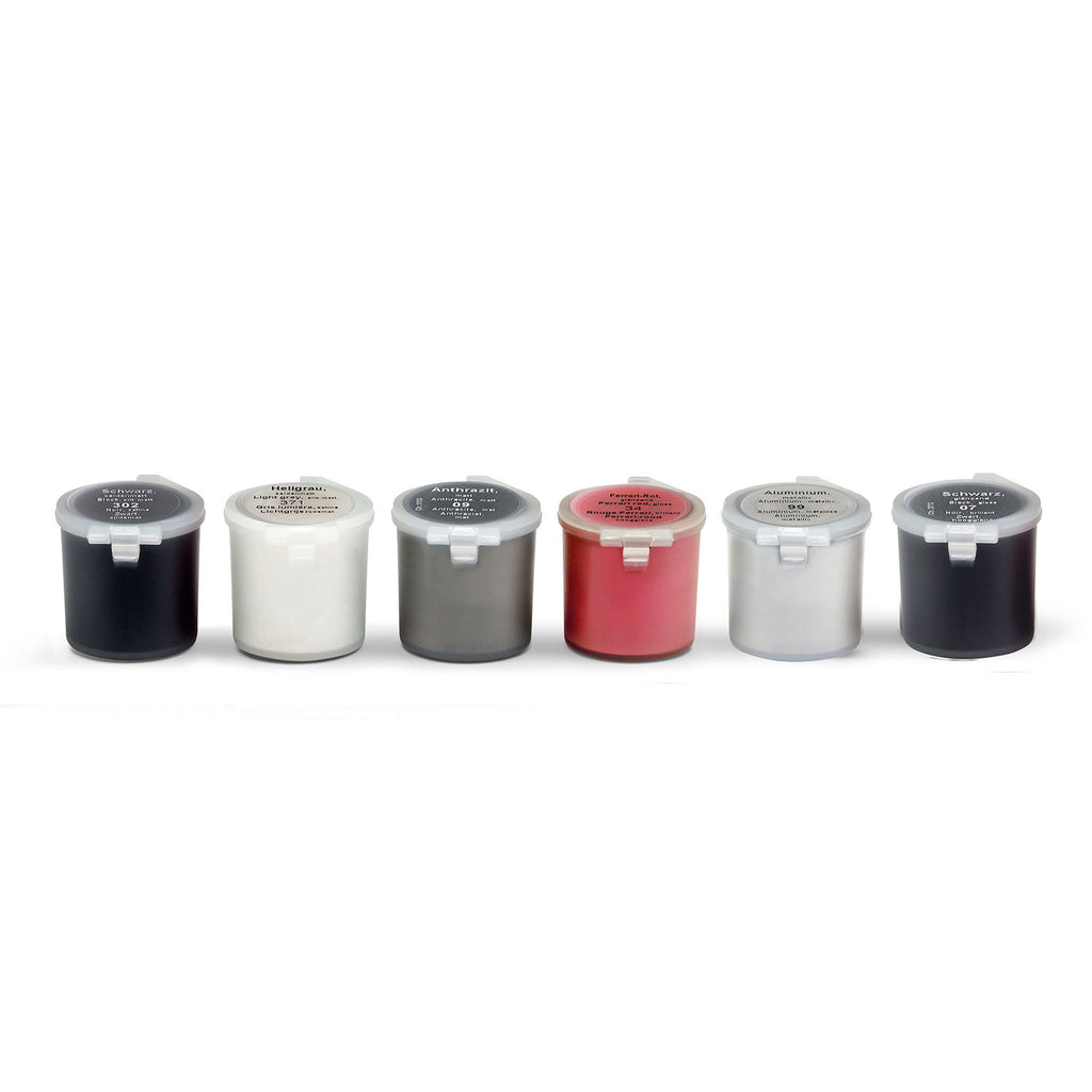 Revell modelbouwverf in de kleurenset sportwagen De set bevat 6 hersluitbare potjes van 5 ml verf in de kleuren: 7 Glanzend zwart 9 Mat antraciet 34 Glanzend Ferrari rood 99 Metallic aluminium 302 Zijdeachtig zwart 371 Zijdeachtig licht grijs