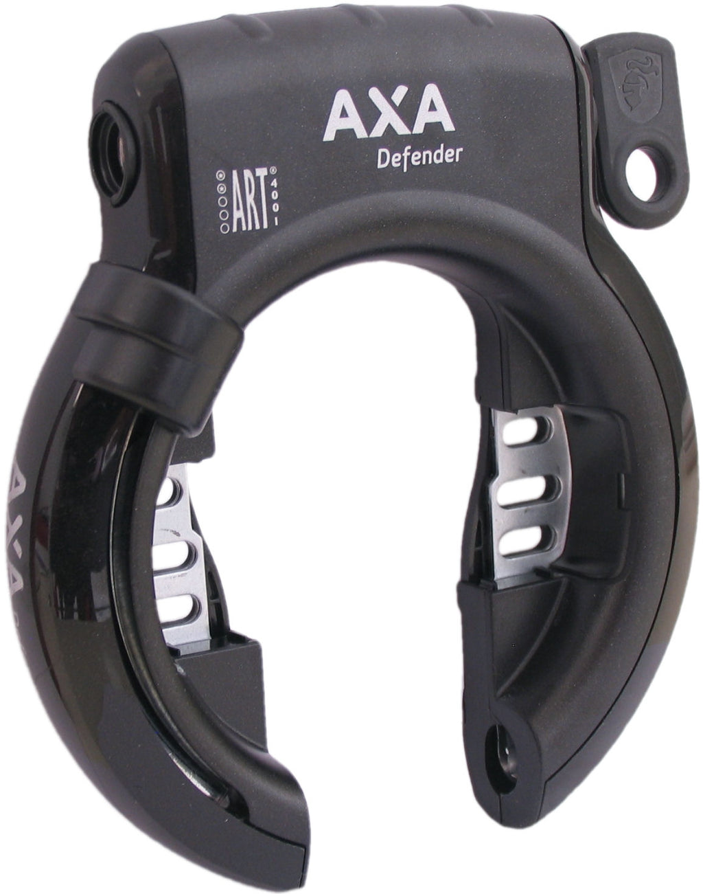 L'AXA Defender est un antivol de cadre de haute qualité avec un design innovant qui vous permet d'insérer un câble ou une chaîne enfichable sur le côté de l'antivol pour connecter votre vélo à un objet fixe.