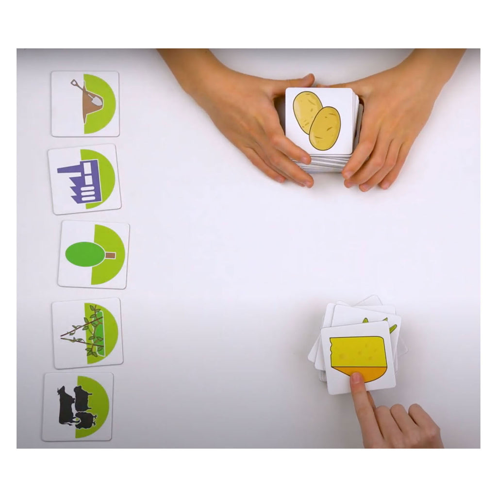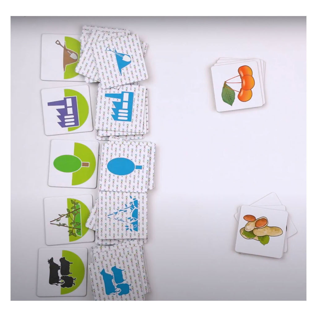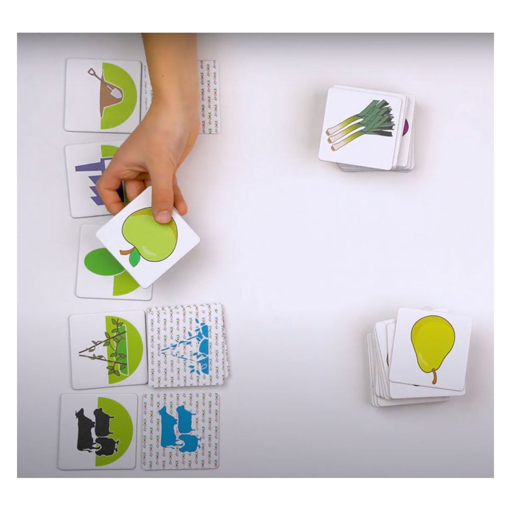 Eet gezond heel het jaar rond' gaat over eten. Jonge kinderen leren waar het eten vandaan komt en welke producten bij elkaar horen. Wat is gezond eten en wat is minder gezond? Welke vruchten hebben zaden en welke hebben pitten? Vanzelfsprekend heb je het dan ook over de eigen maaltijden en tussendoortjes. Het spel bestaat uit 45 kaartjes van 7 x 7 cm met afbeeldingen van voedingsmiddelen en hun groeiwijze, 6 houten pionnen en 50 kunststof fiches. Je speelt het met 2-6 kinderen vanaf 4 jaar.