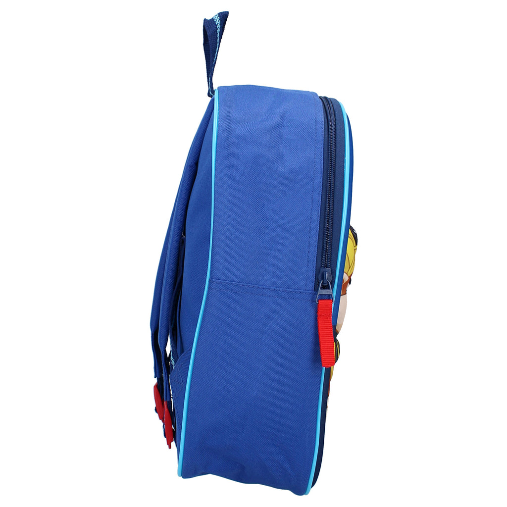 Hoe stoer is deze 3D-rugzak voor naar school of de opvang. Met deze 3D effect rugzak van PAW Patrol heb je de gaafste rugzak! Op de rugzak staan Chase, Marshall en Rubble illustraties met hondenpootjes details op de achtergrond. Het logo van PAW Patrol staat groot afgebeeld. De rugzak heeft een groot hoofdvak. De tas is blauw met rode details. De rugzak heeft een lus om de tas aan op te kunnen hangen en de schouderbanden zijn verstelbaar.