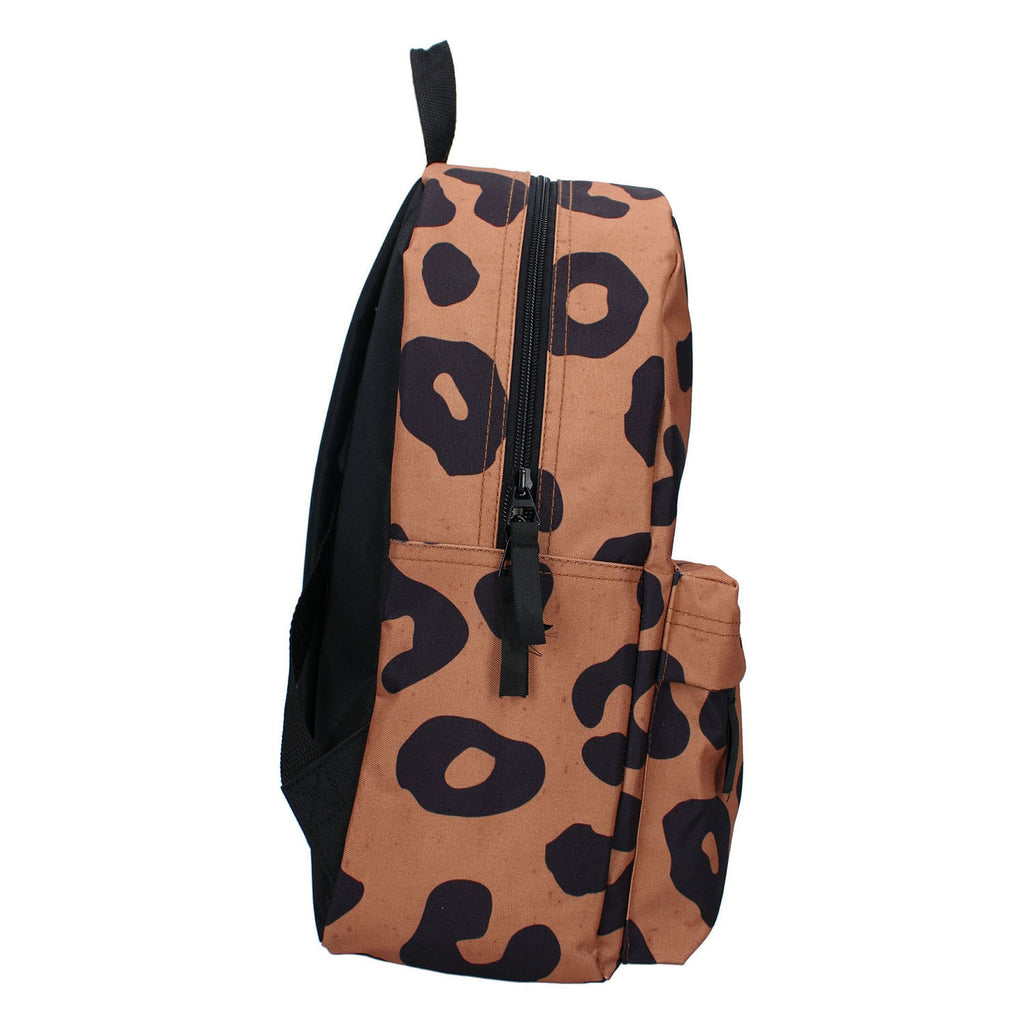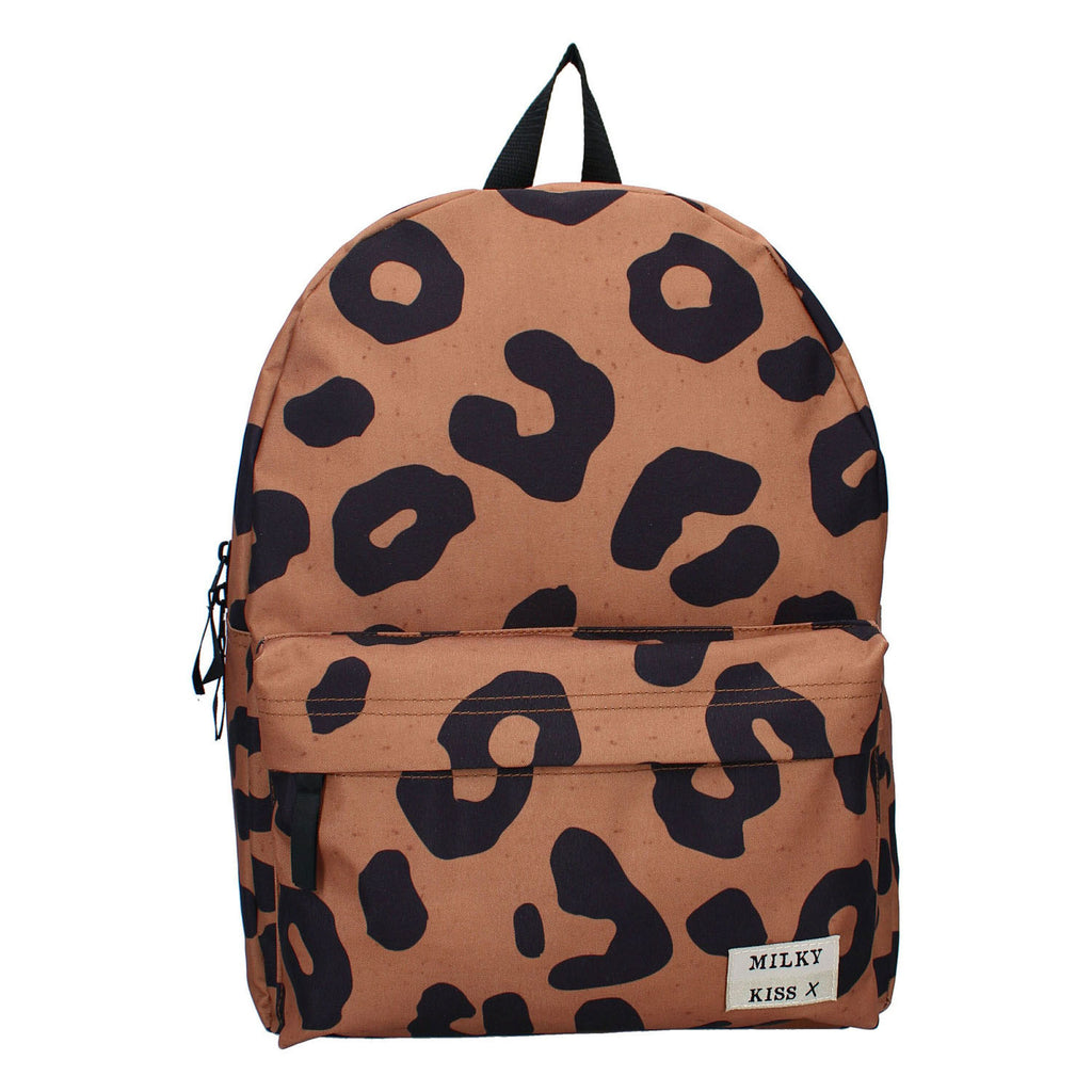 Deze rugzak met panterprint is een echte musthave voor elke meid. Deze Milky Kiss tas uit de Fun Vibes collectie is bruin met zwarte panterprint accenten. De rugzak heeft een ruim afsluitbaar hoofdvak waarin je al je spullen kwijt kunnen. De voorkant van de tas is voorzien van een handig voorvakje met glitter. Neem de tas mee naar school of een dagje weg. De rugzak kan gemakkelijk worden geïdentificeerd met de glitter lus die aan de bovenkant van de rugzak zit. De comfortabele schouderbanden zijn in lengte verstelbaar, met deze rugzak kun je een tijdje vooruit.