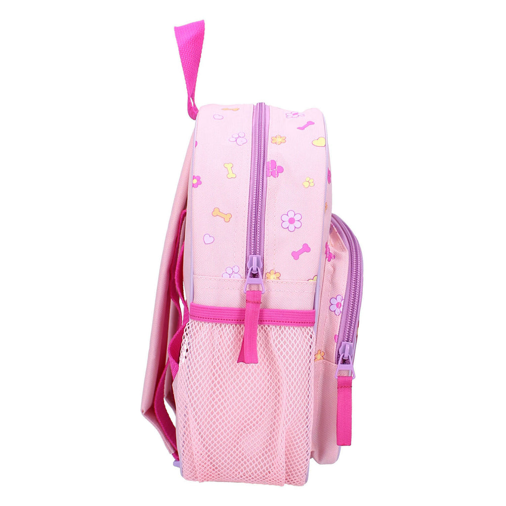 Deze rugzak uit de Girl Pups Rule collectie is ideaal voor alle Paw Patrol fans! De rugzak is roze van kleur met een print van Skye en Everest groot op de voorkant. Het hoofdvak biedt voldoende ruimte en sluit met een rits. Het voorvak sluit ook met een rits. De tas is afgewerkt met paarse details. Aan de overdekte zijn steekvakken, handig voor een drinkfles. Verder heeft de rugzak verstelbare schouderbanden zodat de tas voor iedereen op maat te maken is. Aan de bovenkant van de rugzak is een handige lus zodat de tas ook aan de hand te dragen is.