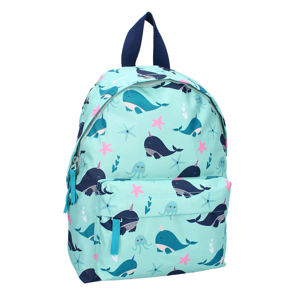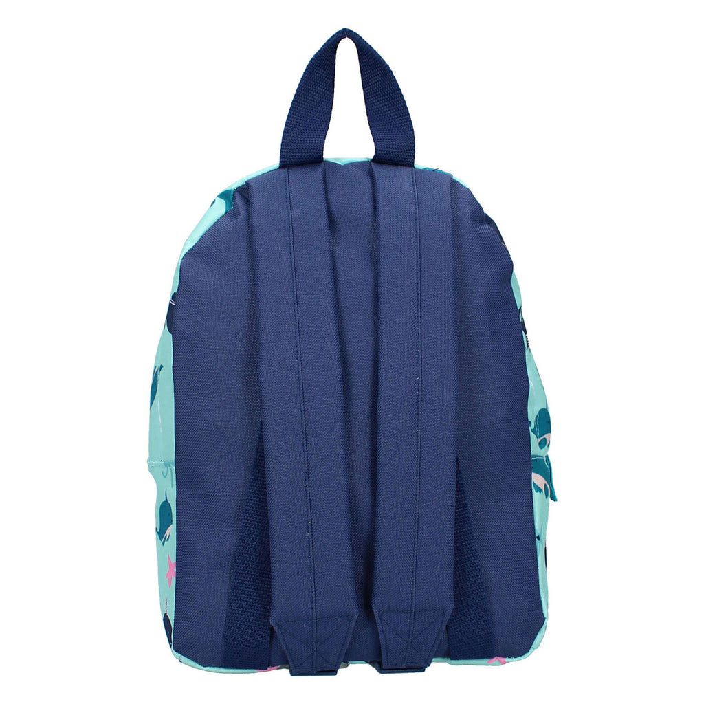Als dit geen grappige rugtas is? Die wil je kindje groot overal mee naartoe nemen. Dit mintkleurige rugzakje uit de Think Happy Toughts collectie is vanwege mij een leuke zeedierenprint. De rugzak heeft een handig voorvak met een rits met ruimte voor de kleinere spulletjes die mee moeten. Het grote hoofdvak heef een handige gecombineerd en biedt ruimte voor bijvoorbeeld een broodtrommel of extra setje kleding. Handig als je kindje de rugtas mee naar school neemt. De rugzak is te dragen aan de lus aan de bovenkant of op het tapijt met de verstelbare schouderbanden.