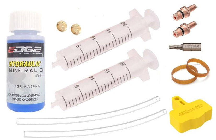 Edge ontluchtingsset passend op Magura hydraulische remsystemen. Set bestaat uit de volgende delen: Flacon minerale olie blauw - 60ml