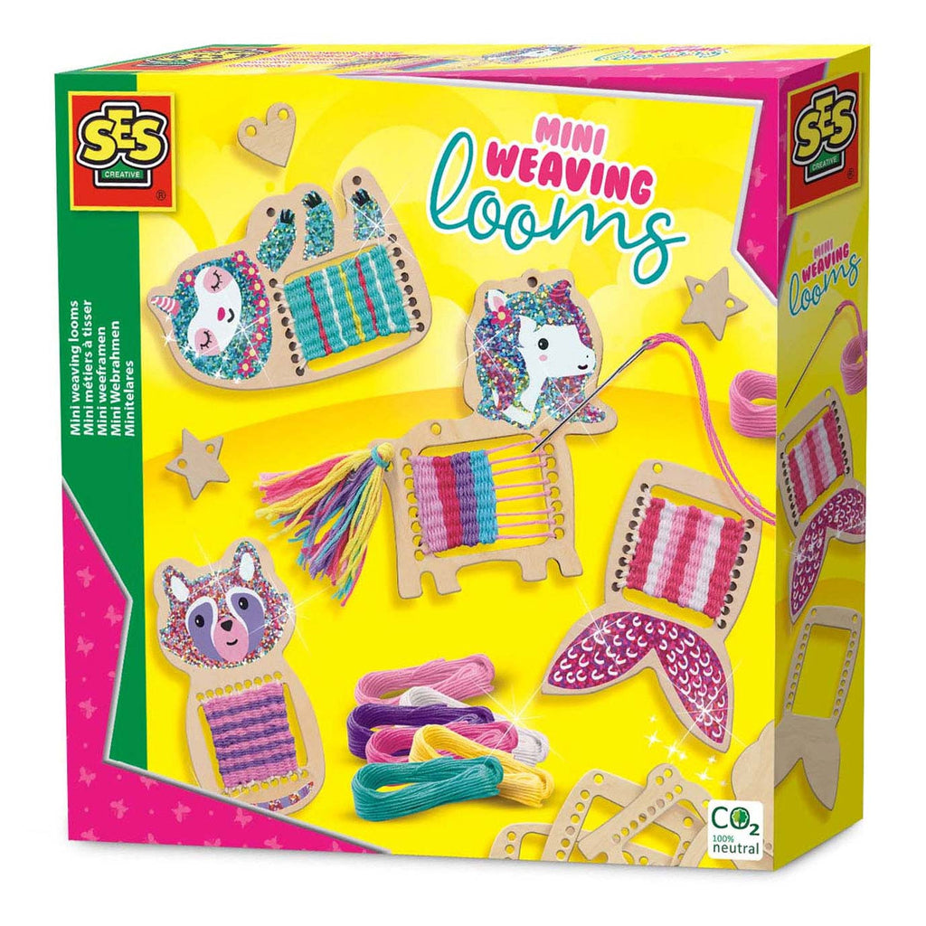 Met deze vier houten miniweeframen en de zes kleuren borduurgaren kun je vier vrolijke diertjes geweven. Om ze helemaal compleet te maken kun je de weetjesframen met glitterstickers maken. Welk diertje ga jij maken? Ga je voor de grappige eenhoorn of voor de relaxte luiaard?