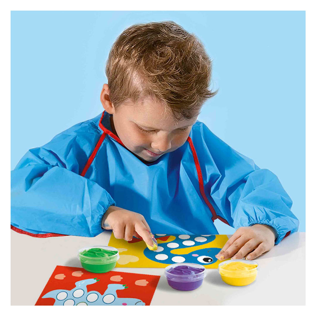 Deze 10 vrolijke dinokaarten zorgen voor een blije knutselervaring voor de allerjongsten. De set bevat 10 dinokaarten en 3 kleuren vingerverf. Kinderen kunnen de verschillende dino's maten zoals zij willen, door hun vingers te gebruiken om te stempelen of te smeren. Een leuke activiteit voor ouders met jonge kinderen en altijd een zelfgemaakt resultaat om trots op te zijn!