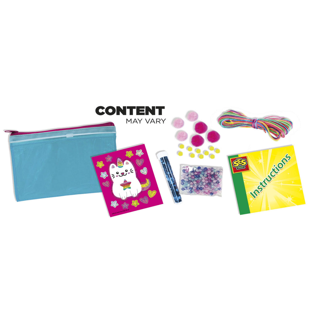 Maak je eigen etui met deze leuke set! De blauwe etui met paars-roze bevat ook een doorzichtig voorvakje, waar je stickers, kralen, pompons en glitters in kan doen ter versiering van jouw etui!