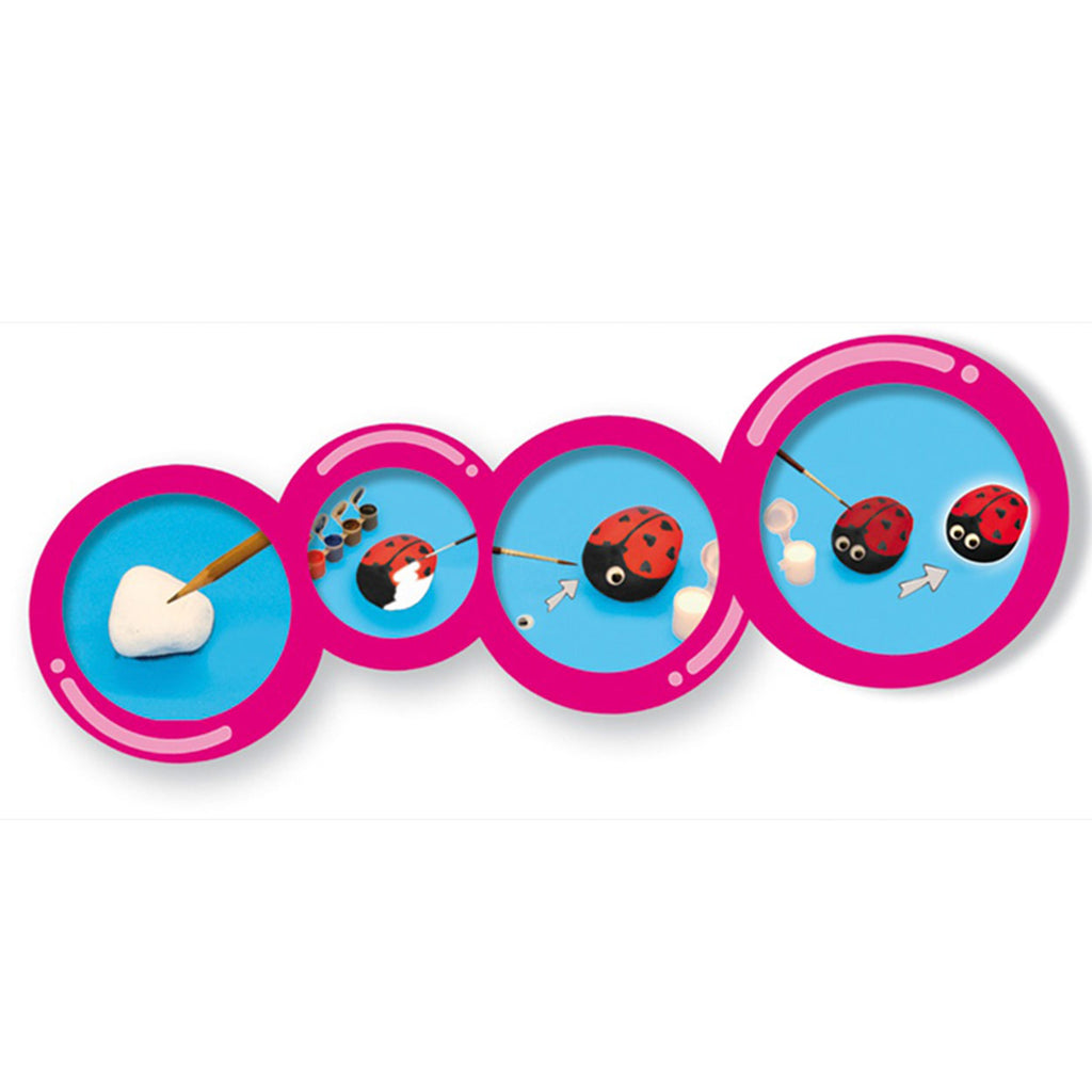 Dit setje bevat trendy kleuren verf en een aantal mooi gevormde stenen die je kunt gaan schilderen om je eigen Happy Stones te maken. Maak jij er ook van die leuke kleine beestjes van?