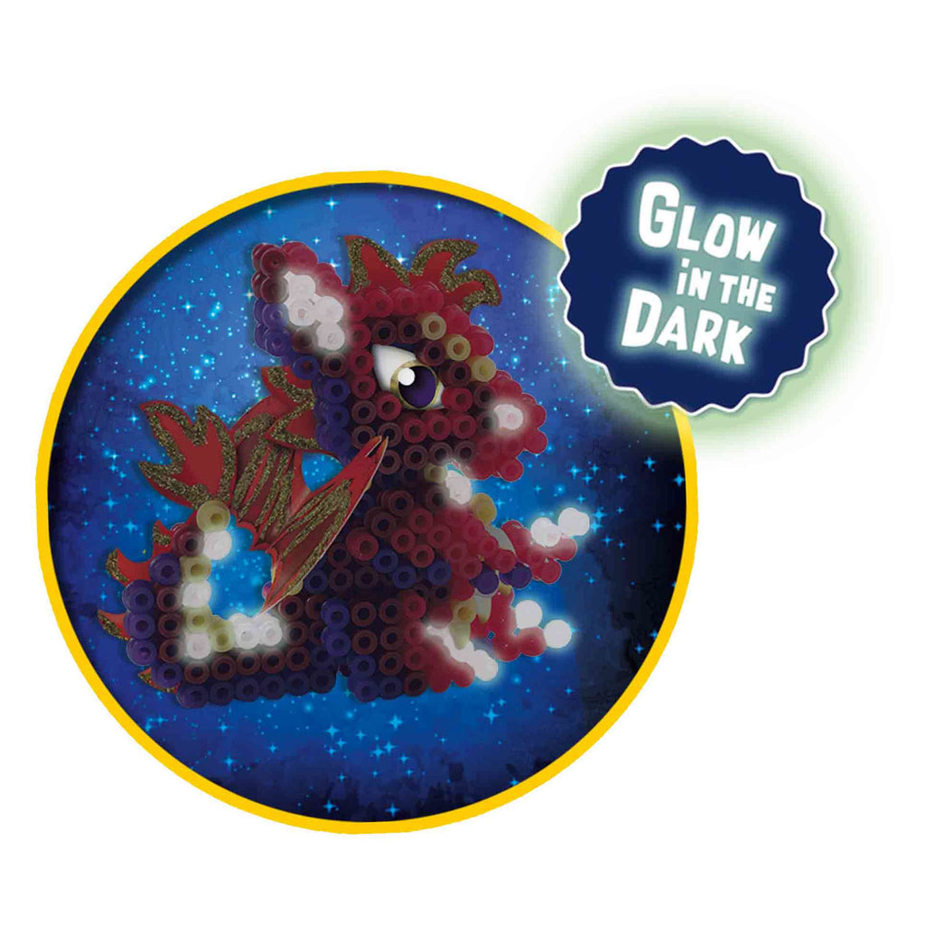 Maak vlammende 3D draken met deze draken strijkkralenset. Met 1800 strijkkralen maak je drie verschillende stoere draken. Leg en strijk de verschillende lagen en knutsel laag voor laag de 3D draken op. Het drukwerk met drakenprint maakt dit heel eenvoudig om te doen. Met de tube gouden glitterlijm wordt de draken pas echt spannend!