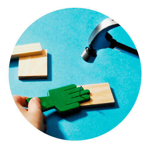 Met deze Timmerset (artnr. SES 00943) kun je naar eigen idee verschillende dingen timmeren, zoals een auto, huis, stoel, tafel, enzovoort. De set wordt geleverd met een hamer, spijkertjes en lijm, zodat je gelijk aan de slag kunt. Het rubberen handje in de doos houdt de spijkers vast, zodat je jezelf niet per ongeluk op je vingers slaat!
