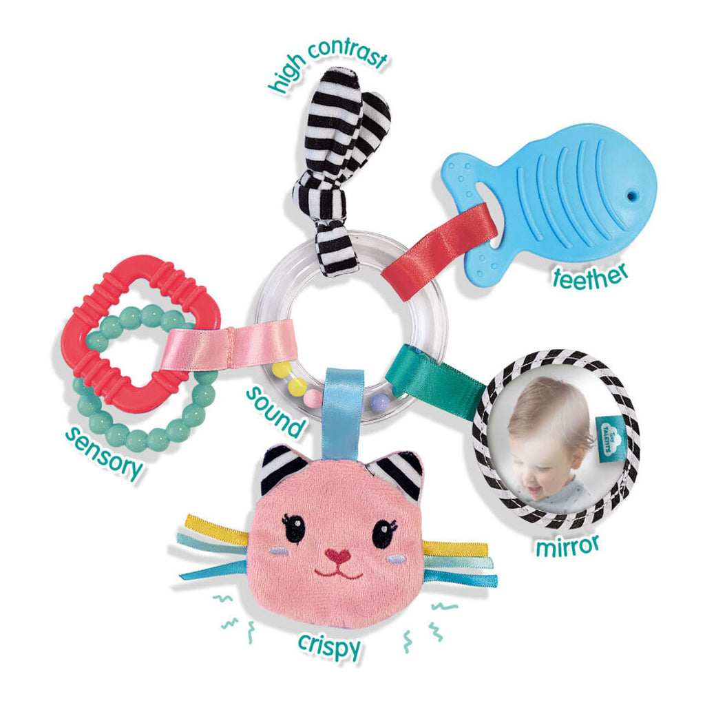 Deze handige speelring van SES Creative is perfect om jouw kindje te maken met verschillende activiteiten. Het bevat een knisperende kat met snorharen, een spiegeltje en een bijtspeeltje met ribbels. Deze speelring stimuleert alle zintuigen van jouw kindje en is een geweldige manier om hun ontwikkeling te begrijpen.