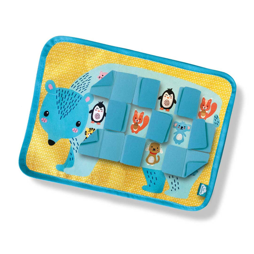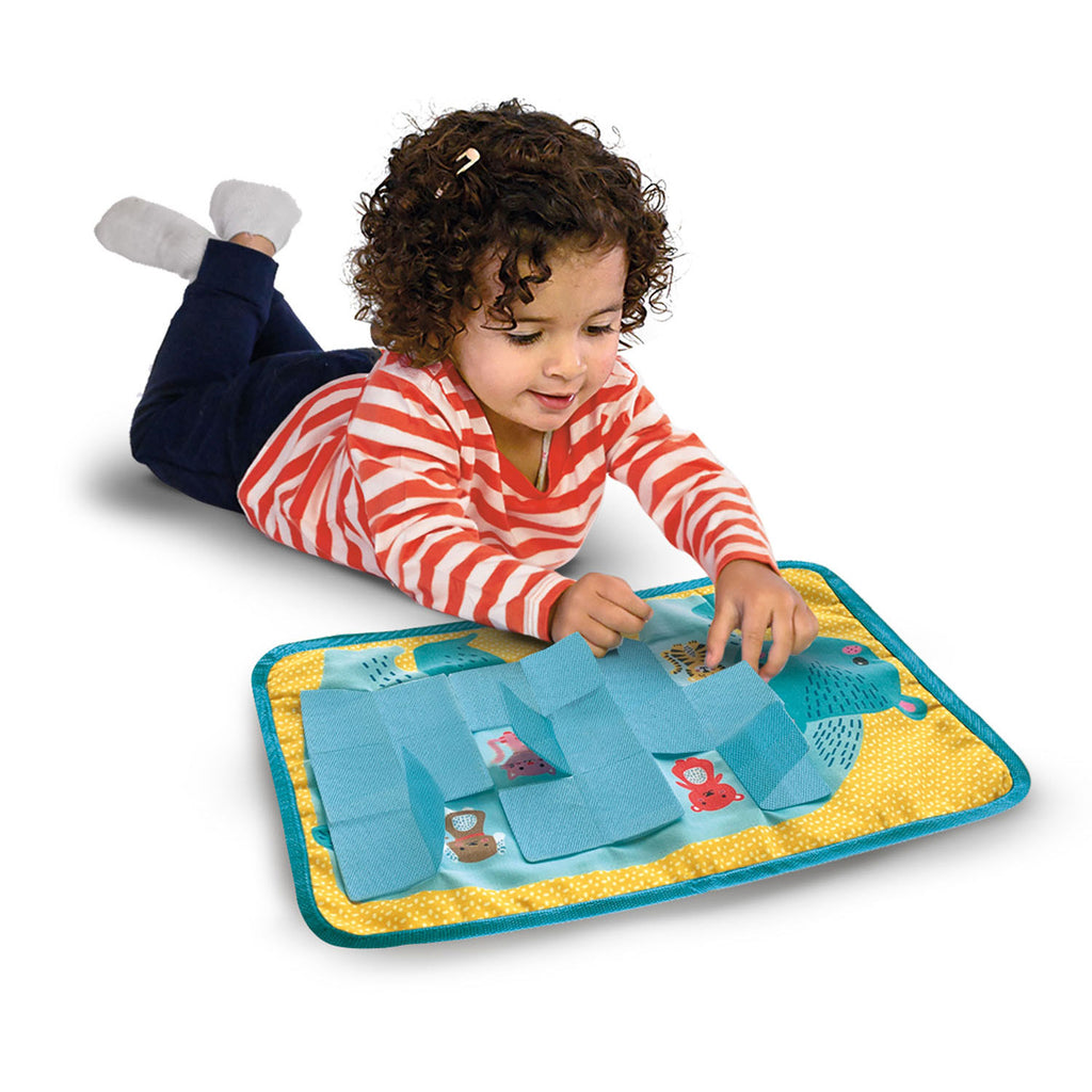 Kiekeboe! Heb jij twee dezelfde dieren ontdekt? We hebben 18 dieren verstopt, waarvan er telkens twee identiek te vinden zijn. Lukt het jou om de negen dierencombinaties te vinden? De mat is gemaakt van textiel met zachte flapjes van vilt. Omdat er geen losse kaartjes in deze memoset zitten neem je de mat gemakkelijk overal mee naar toe. Er zitten geen kleine onderdelen in, dus dit product is uitermate geschikt voor de allerkleinsten.
